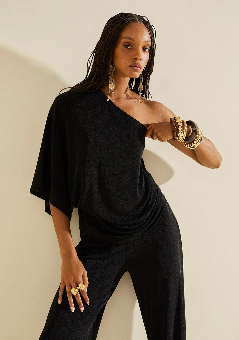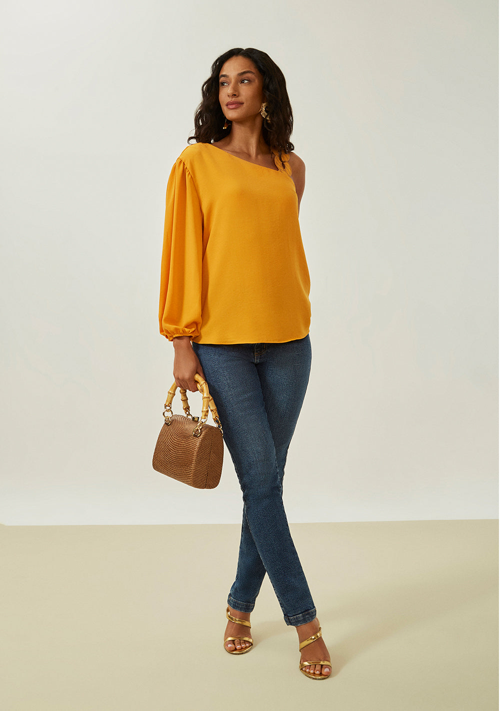 Blusa Suelta De Un Hombro Mangas Tres Cuartos