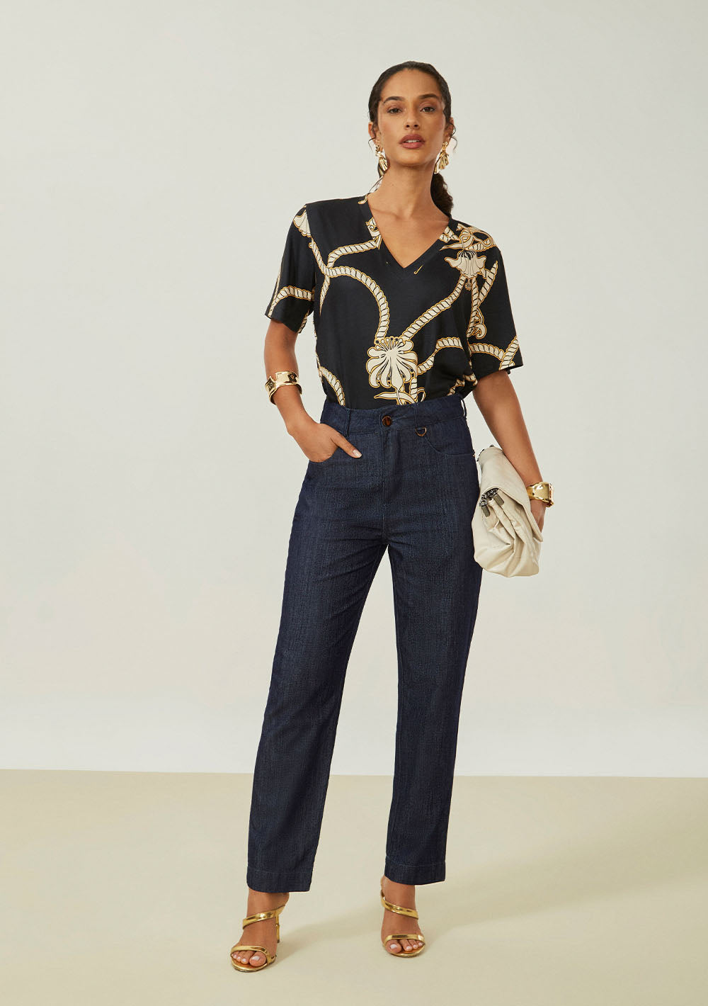 Blusa Al Cuerpo Escote en V Mangas 7/8