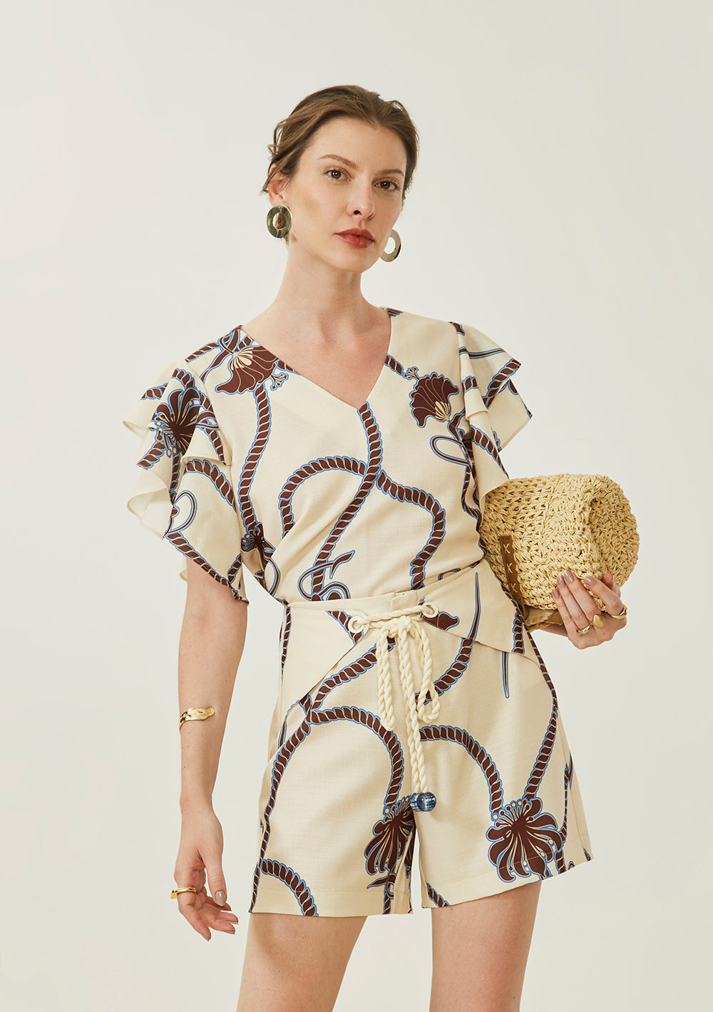 Blusa Suelta Escote en V Mangas Cortas Cropped