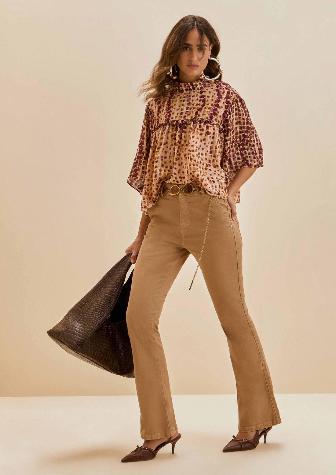 Blusa Suelta Cuello Clásico Mangas Largas Cropped