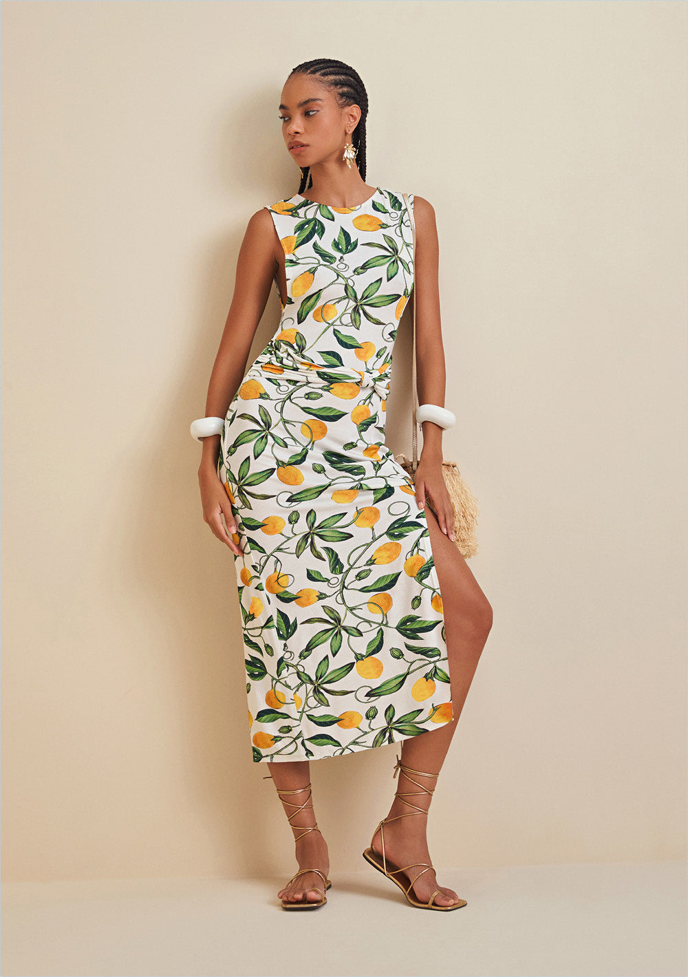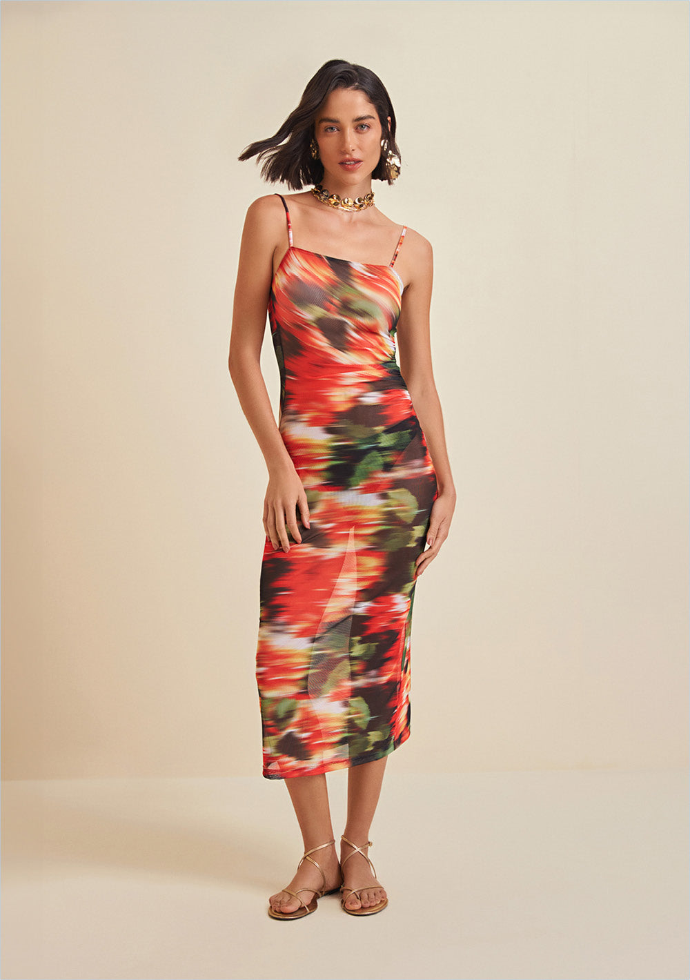Vestido Largo Escote Recto Estampa Frontal