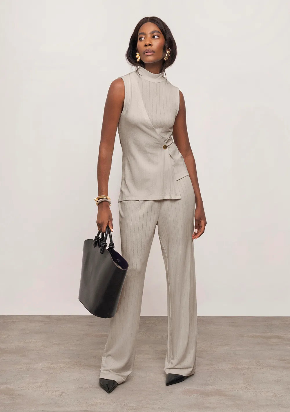 Descubre la elegancia sin complicaciones del Pantalón Zinco Recto de Tiro Alto en color Off...