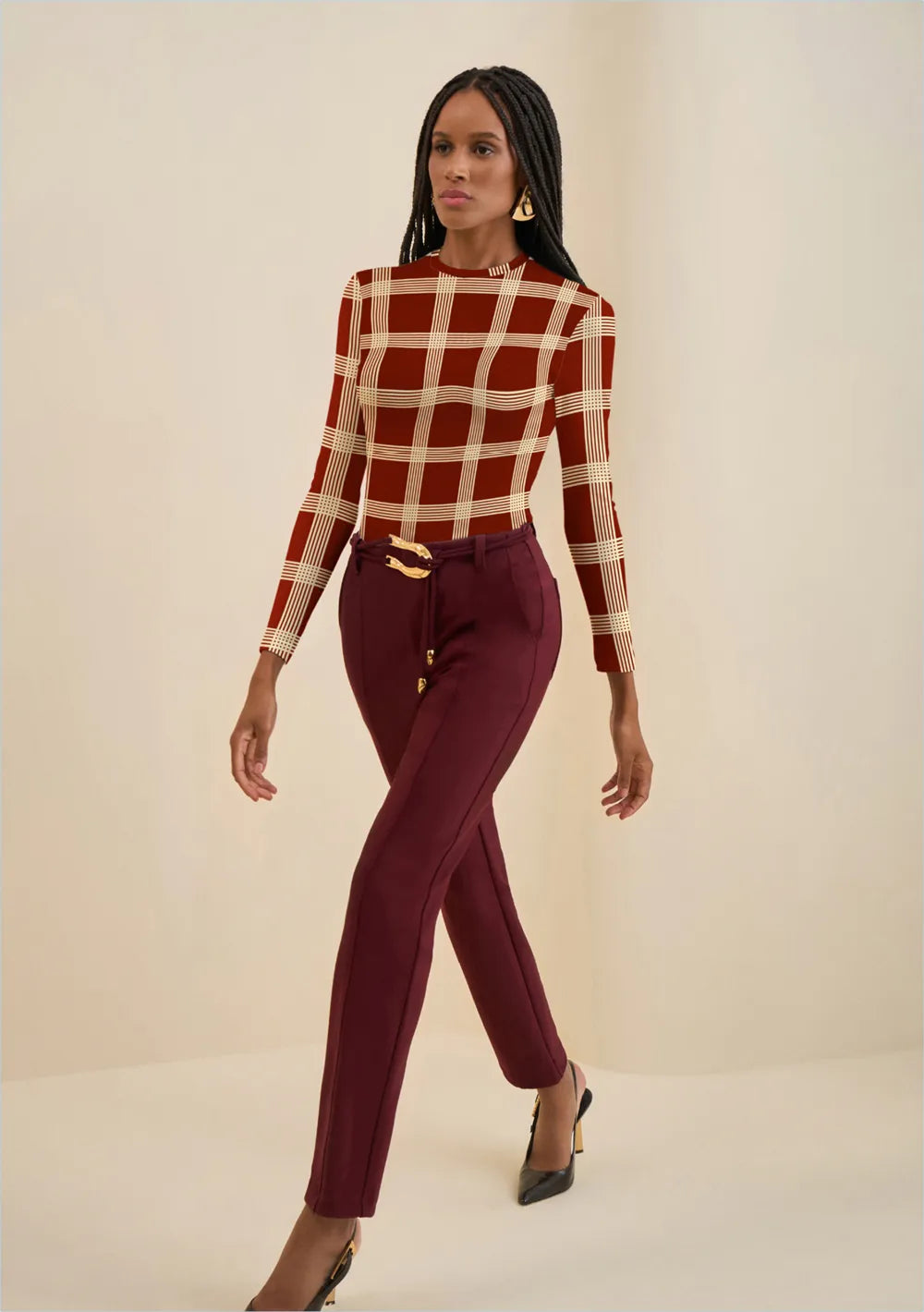 Pantalón recto de tiro medio en color marrón de Morena Rosa: un toque de sofisticación...