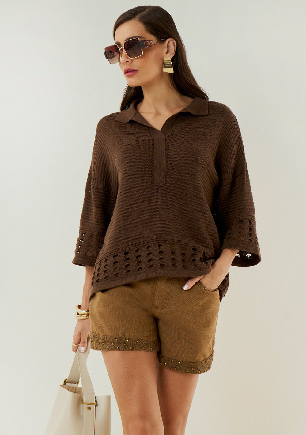 La Camisa Morena Rosa Suelta tipo Polo de Manga Corta en un deslumbrante tono azul...