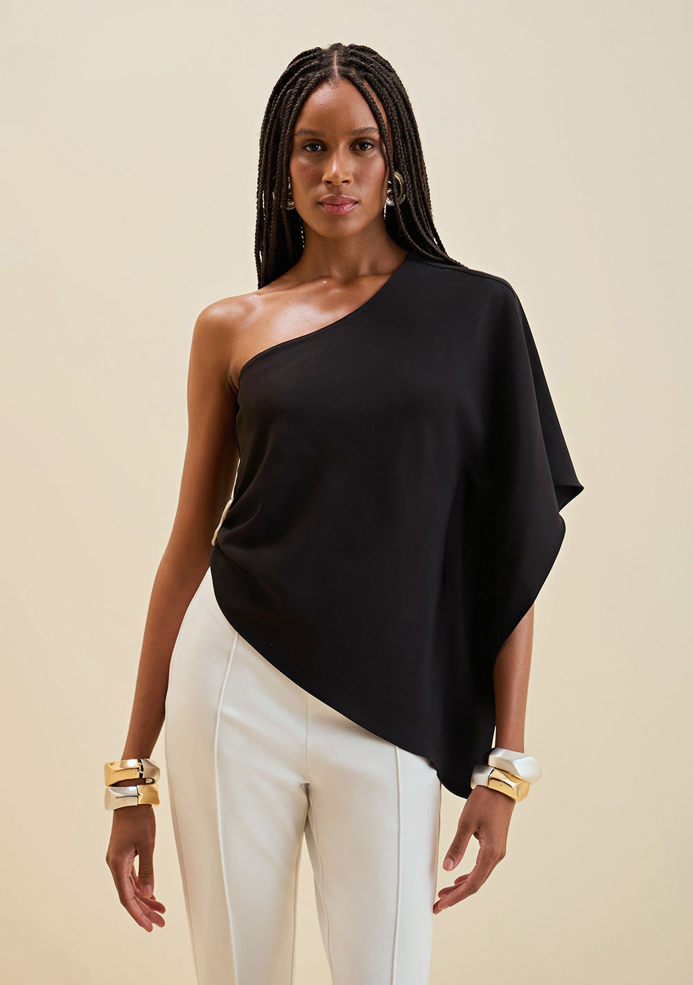 Blusa Ajustada Un Solo Hombro Mangas Cortas