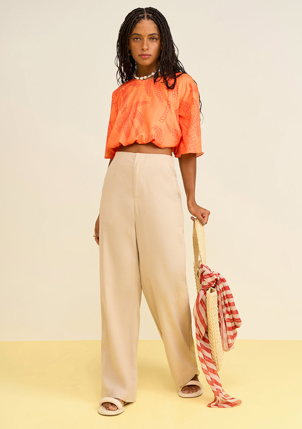 Descubre el pantalón recto de tiro alto en color naranja de Zinco, que captura la...