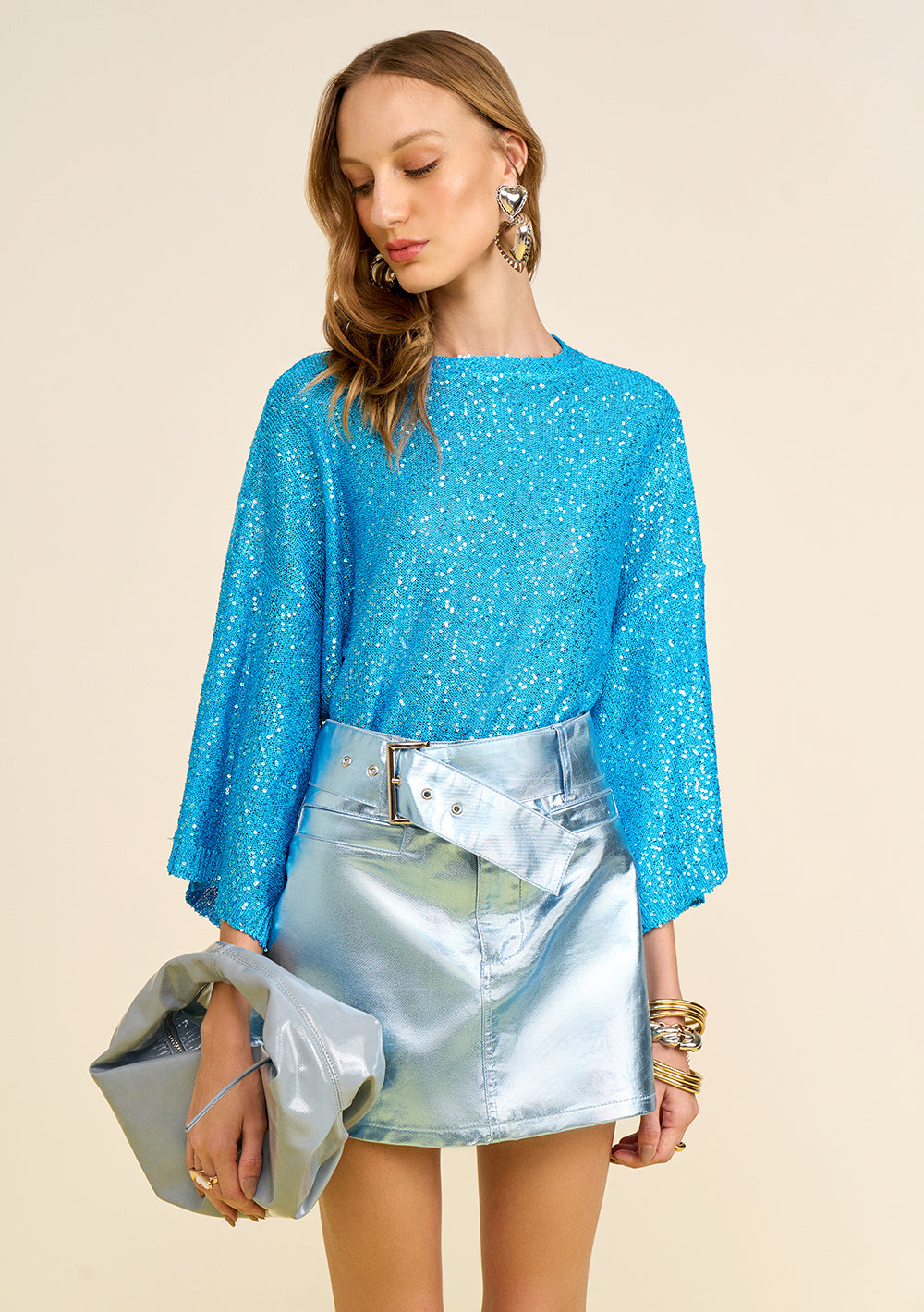 Descubre la falda recta corta de tiro alto en color azul de Zinco, una prenda...