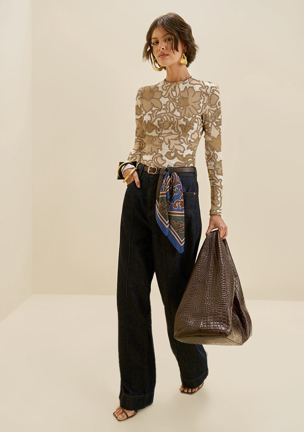 Jeans wide de tiro alto en color beige de Morena Rosa: la prenda perfecta para...