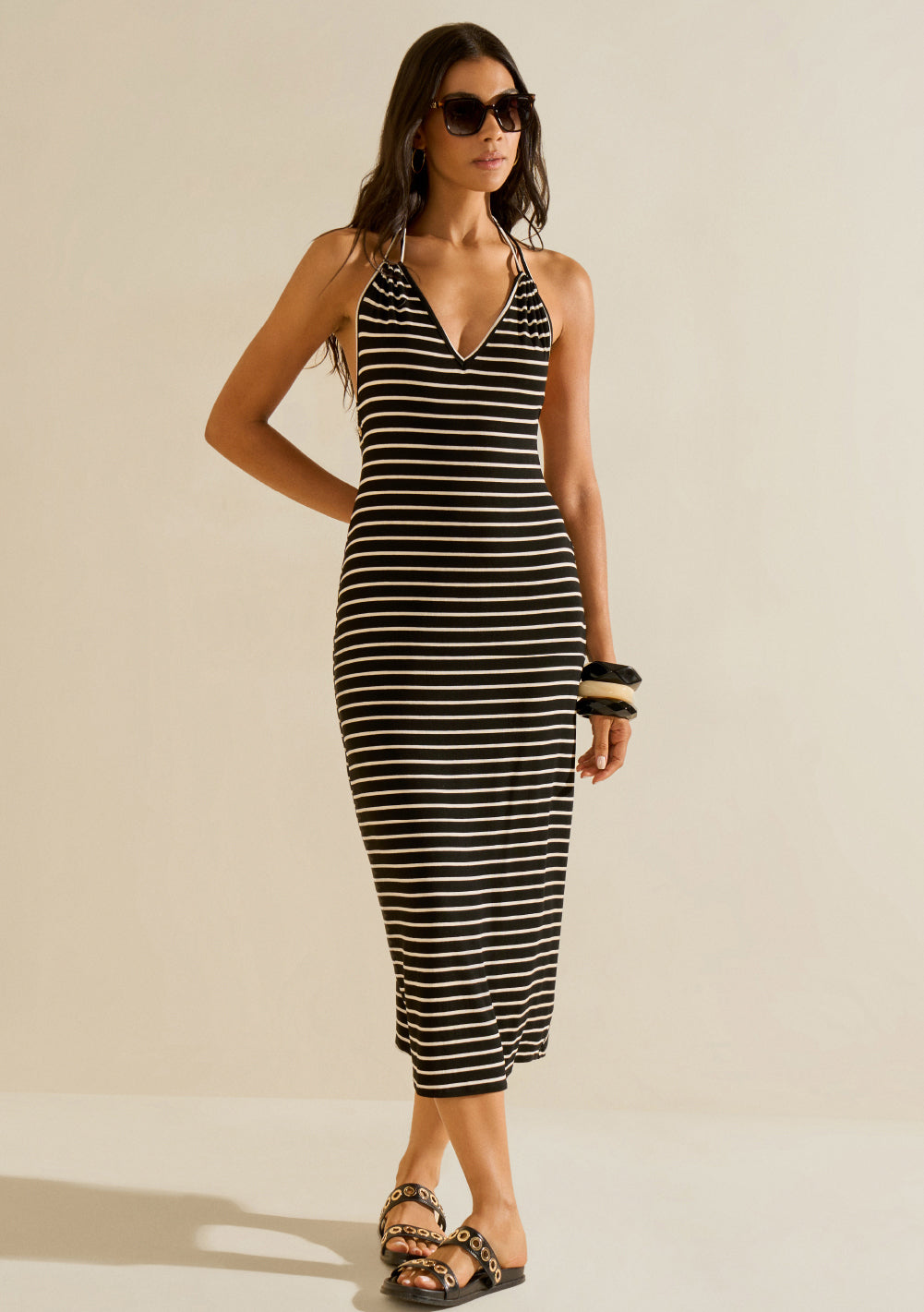 Vestido Ajustado Escote En V Con Tirantes Midi