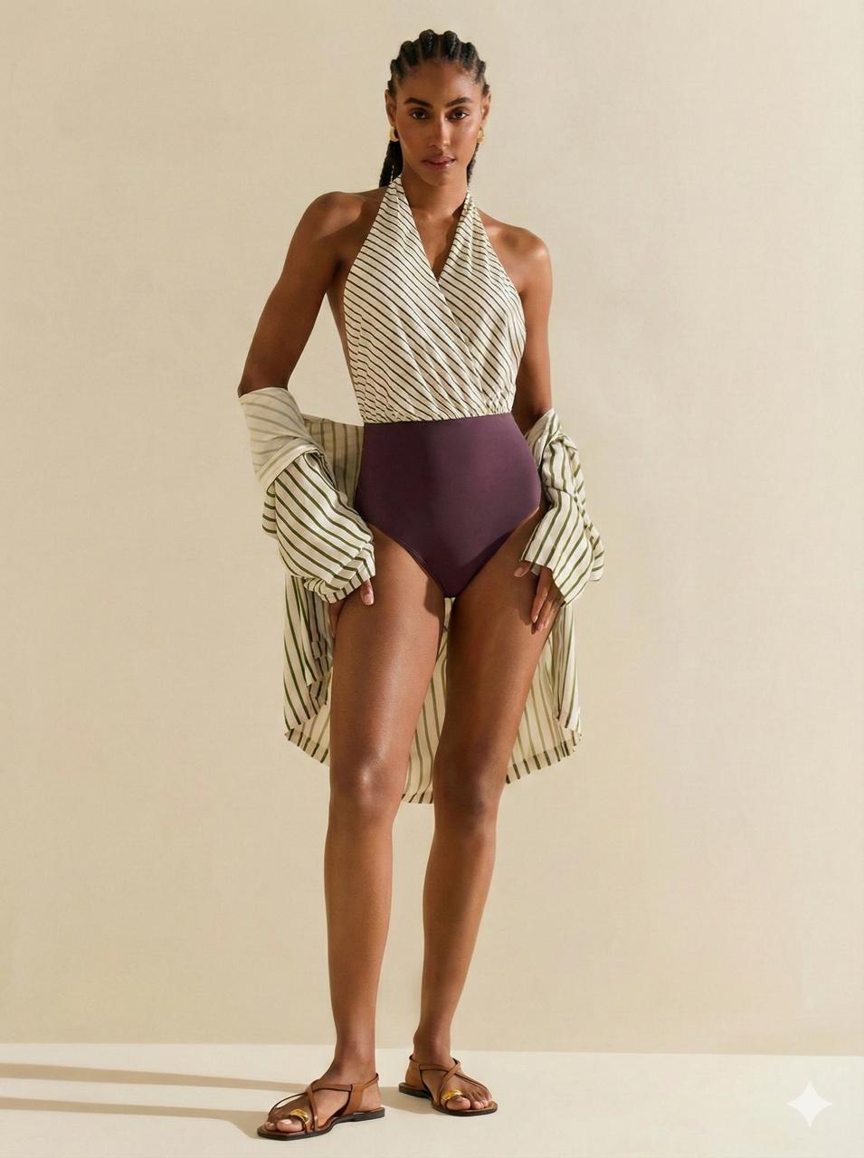 Transforma tus días de verano con el Maiô Morena Rosa de cuello halter con copas...