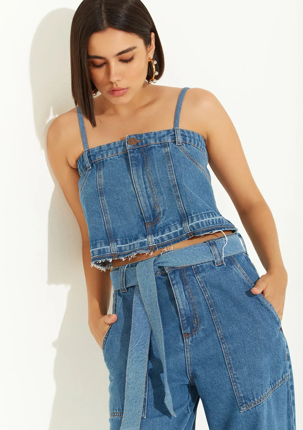 Top Jeans Escote Cuadrado Con Tirante Fino