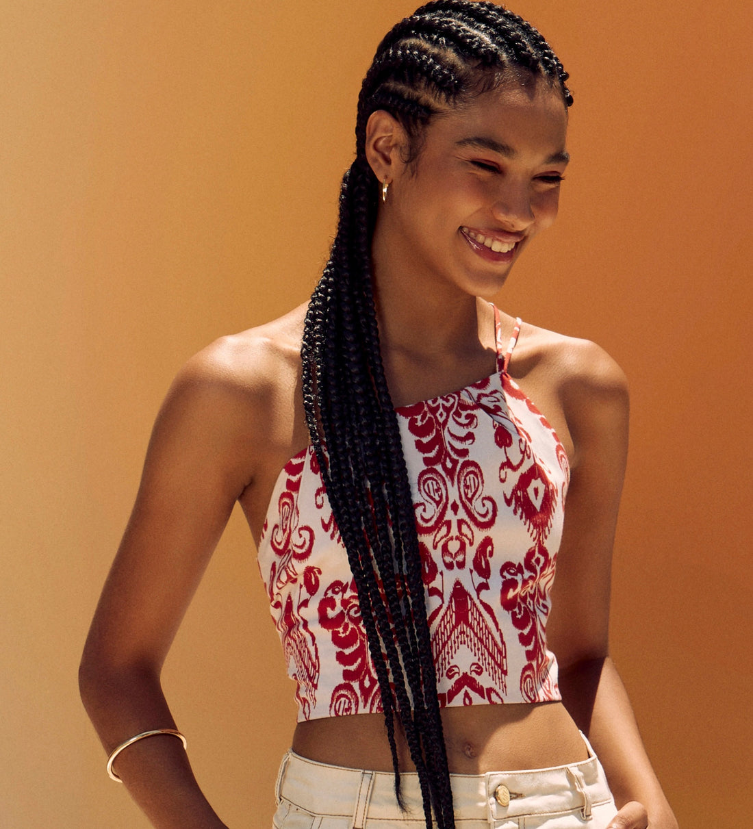 Exprese el espíritu vibrante del verano con el Top Bandeau Estampado de la colección Morena...