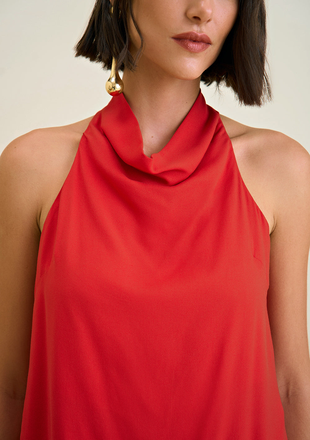 Blusa Cuello Alto Sin Mangas Abertura Espalda
