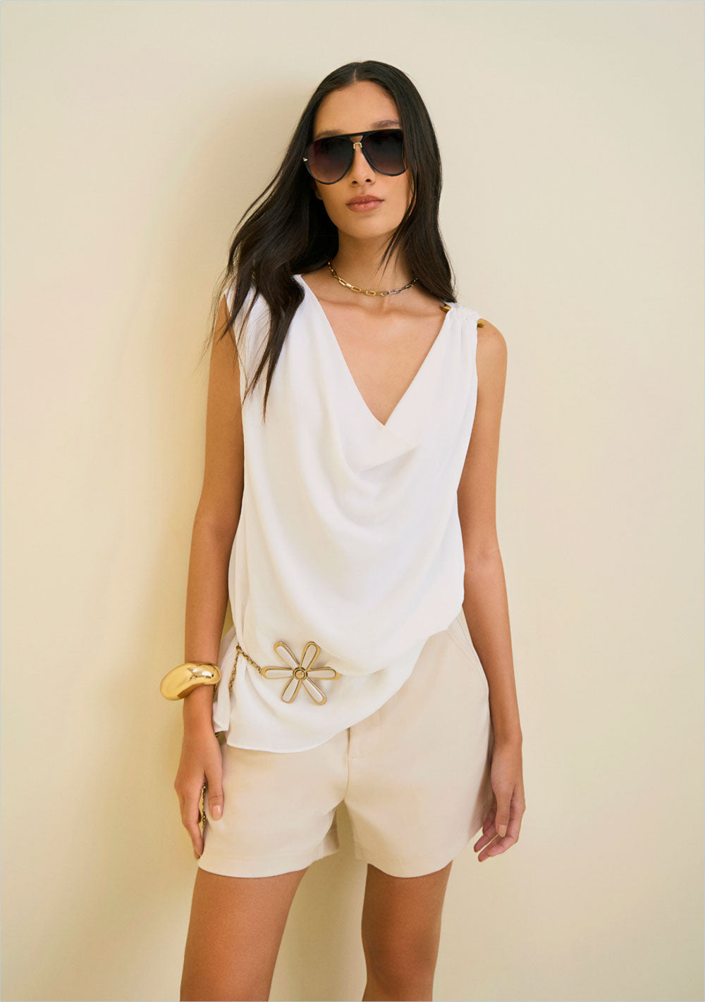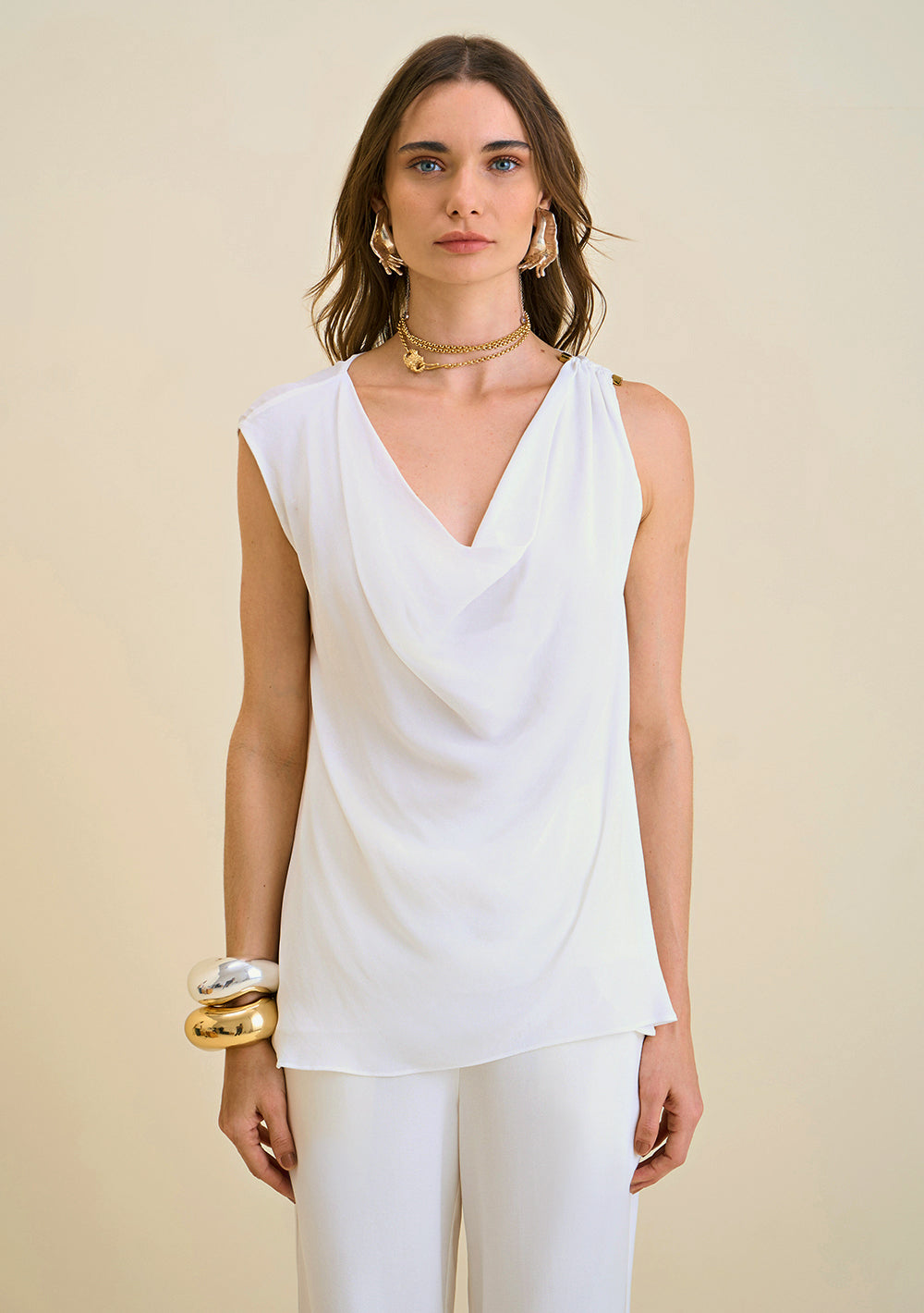 Blusa Escote Drapeado Sin Mangas Con Detalle En El Hombro