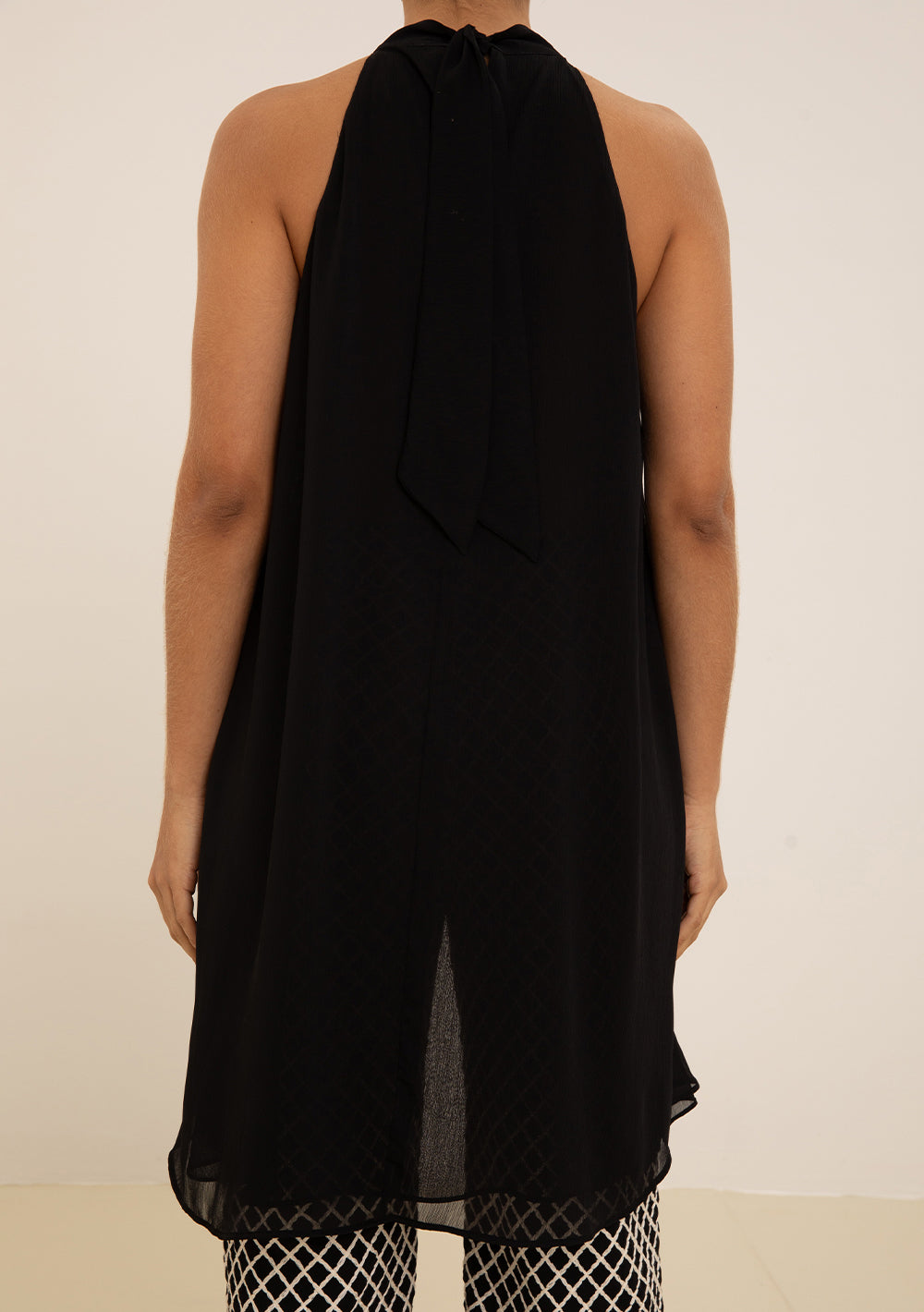 La blusa sin tirantes en chiffon negro es la elección ideal para la mujer moderna que busca elegancia y sofisticación en cualquier ocasión. Con un diseño suelto y cuello alto, ofrece un calce fluido que realza la silueta, creando un look impactante y lleno de personalidad. Perfecta para combinar con una falda midi de cintura alta y sandalias de tiras, o con pantalones de sastrería y accesorios minimalistas, esta pieza es un verdadero comodín para eventos nocturnos y encuentros especiales. La colección Litorale evoca la ligereza del litoral mediterráneo, reflejando la fuerza y autenticidad de la mujer Maria.Valentina. Siéntete segura y radiante con esta blusa que eleva tu estilo.