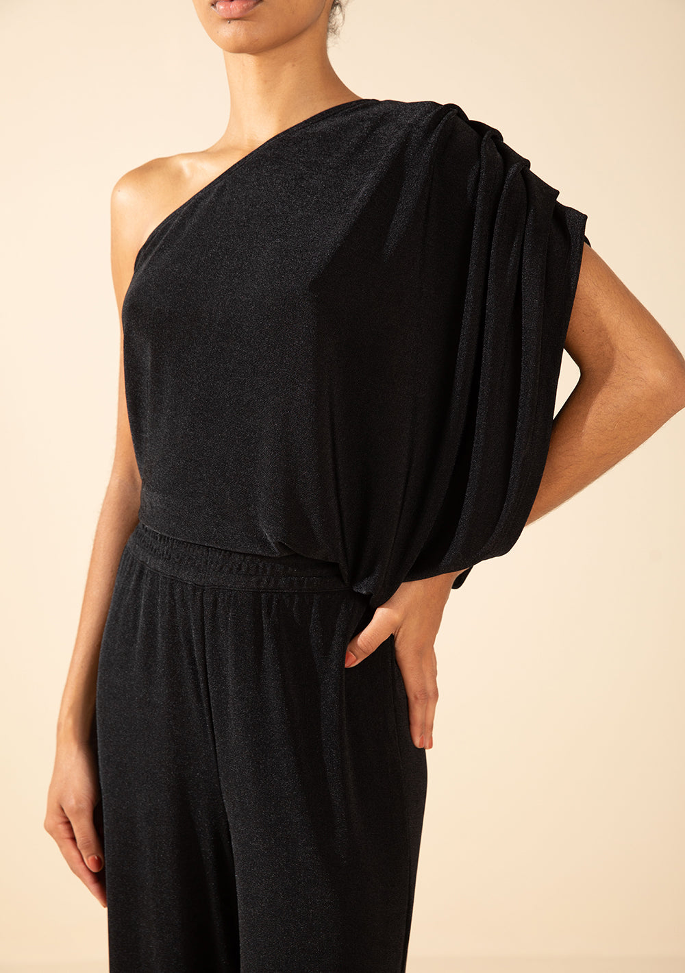 Déjate seducir por la blusa Morena Rosa de un solo hombro y manga 3/4, un icono de sofisticación y estilo. Con un diseño moderno y asimétrico, esta prenda estampada en negro es ideal tanto para ocasiones informales como sofisticadas. Su tejido ligero y flexible se adapta al cuerpo, garantizando comodidad y elegancia. Ideal para combinar con faldas midi o pantalones acampanados, y para un look deslumbrante con accesorios dorados. Parte de la colección "¡Ela é Carioca!", transmite la vibrante esencia de la mujer contemporánea que vive la moda con intensidad. Accesorios no incluidos.