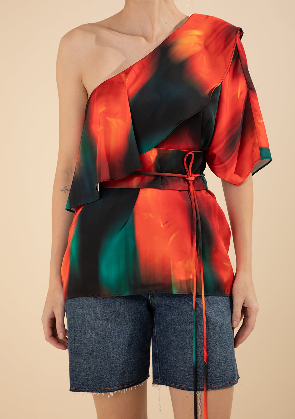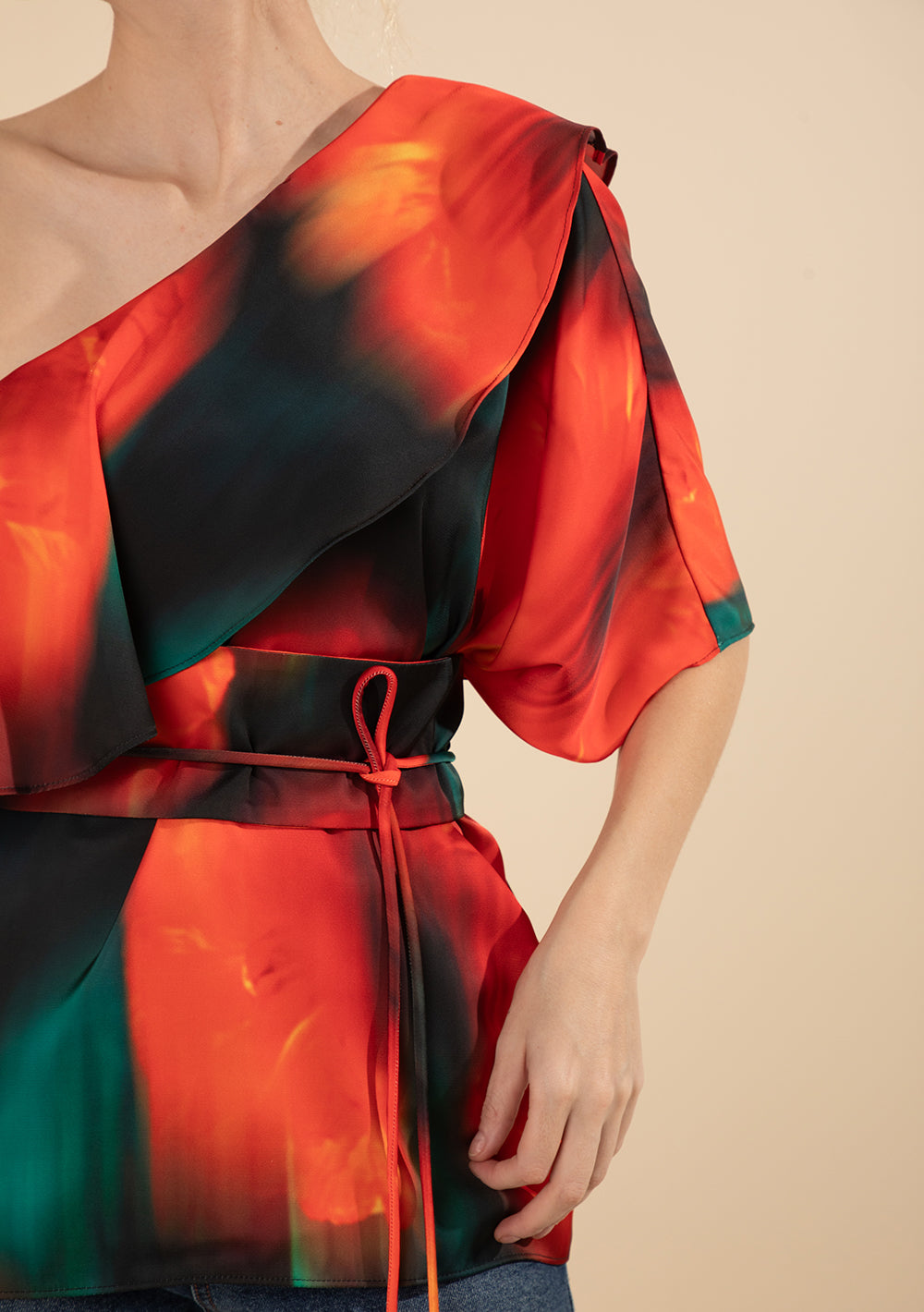 Blusa Suelta De Un Solo Hombro Mangas Cortas