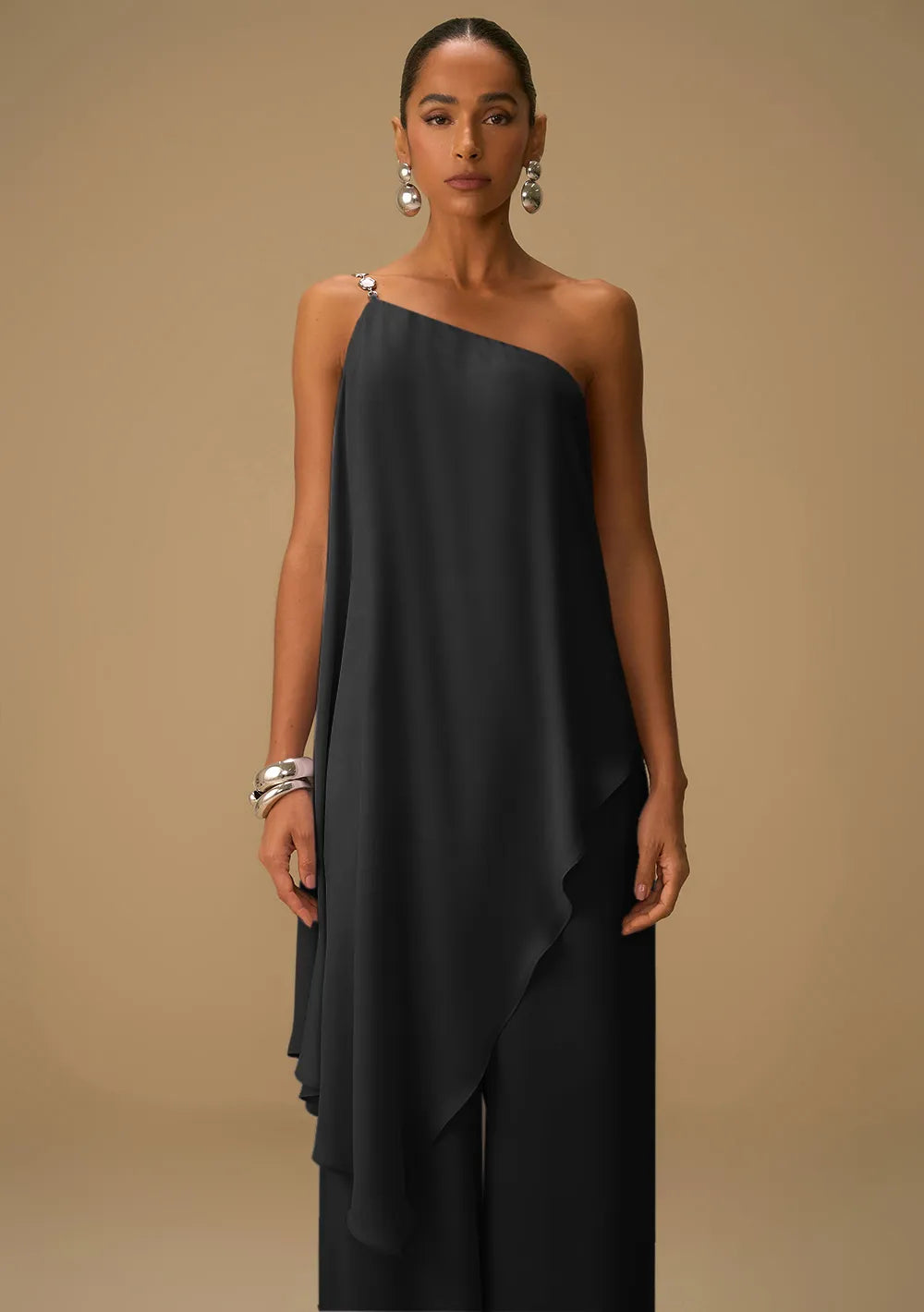 La blusa de un solo hombro de Maria Valentina es la máxima expresión de la sofisticación moderna. Con diseño sin tirantes y corte alargado, esta prenda en crepé negro envuelve el cuerpo con elegancia, perfecta tanto para momentos casuales como para eventos refinados. Su encanto único evoca la grandeza del Renacimiento, mientras que la poliamida de alta calidad garantiza comodidad. Combínala con una falda lápiz y tacones para un look poderoso o con jeans para un estilo relajado y chic. Siéntete segura y auténtica, reflejando la esencia de una mujer contemporánea que valora cada detalle.
