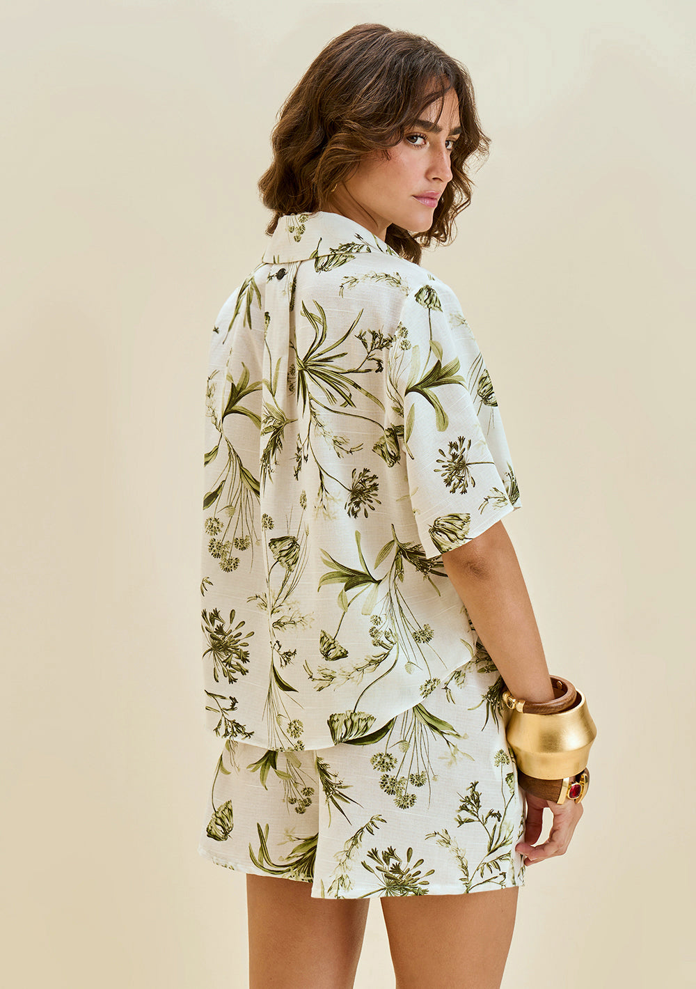 Camisa Suelta Cuello Clásico Mangas Cortas