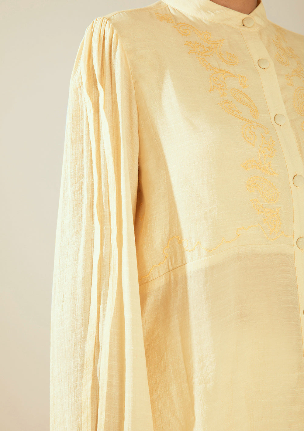 Camisa Suelta Cuello Mao Mangas Largas