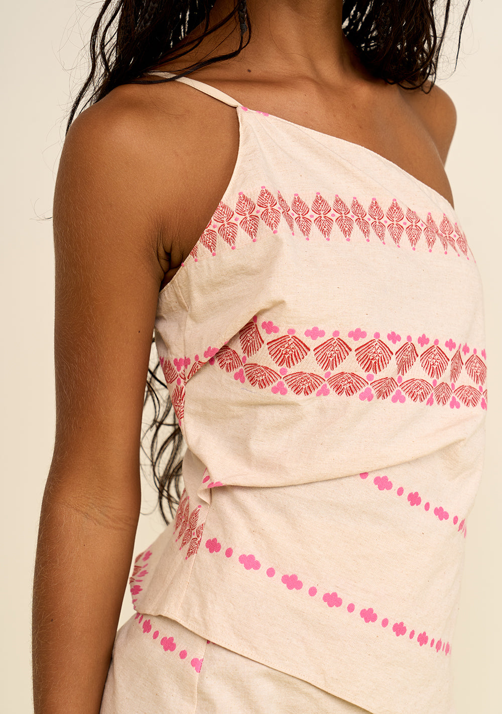Descubre la camiseta de tirantes ajustada Zinco de un solo hombro en blanco roto, una prenda que derrocha estilo y autenticidad. Confeccionada en popelina 100 % algodón, esta camiseta ofrece un ajuste perfecto y una comodidad excepcional. Ideal para ocasiones informales o fiestas, su color blanco roto ofrece versatilidad, permitiendo combinaciones increíbles con vaqueros o faldas estampadas. Complementa el look con accesorios dorados para un toque sofisticado. ¡Deja huella con la elegancia relajada de Zinco y vive momentos inolvidables!