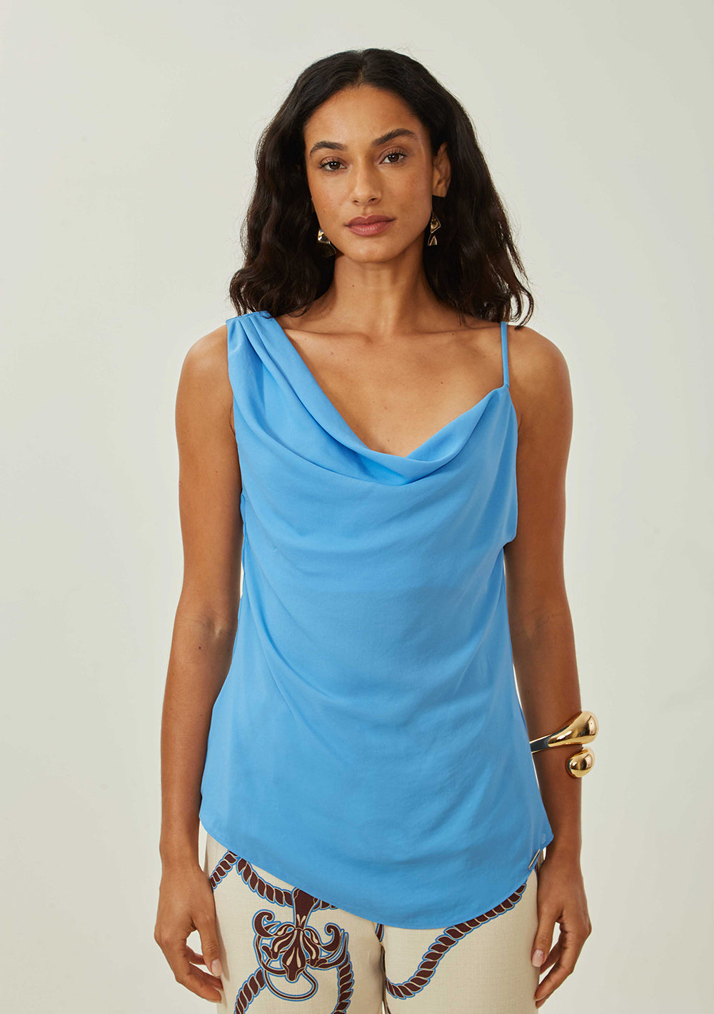La regata Maria.Valentina en estampado azul es la personificación de la sofisticación atemporal. Con un calce suelto y escote en V, esta pieza en crepé 100% poliamida ofrece una elegancia fluida que evoca los veranos italianos, perfecta para ocasiones que requieren un toque de clase. Ideal para combinar con una falda midi en un look casual o con un pantalón de sastrería en eventos sociales. Apuesta por accesorios dorados para un estilo aún más sofisticado.