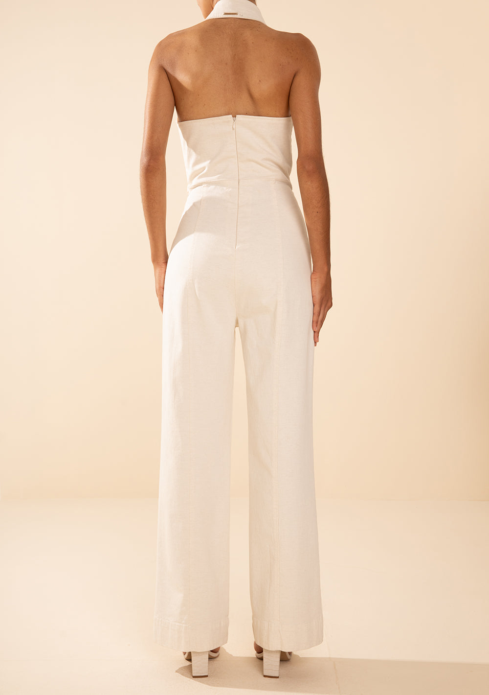 Enterizo Largo Ajustado Escote En V Sin Mangas