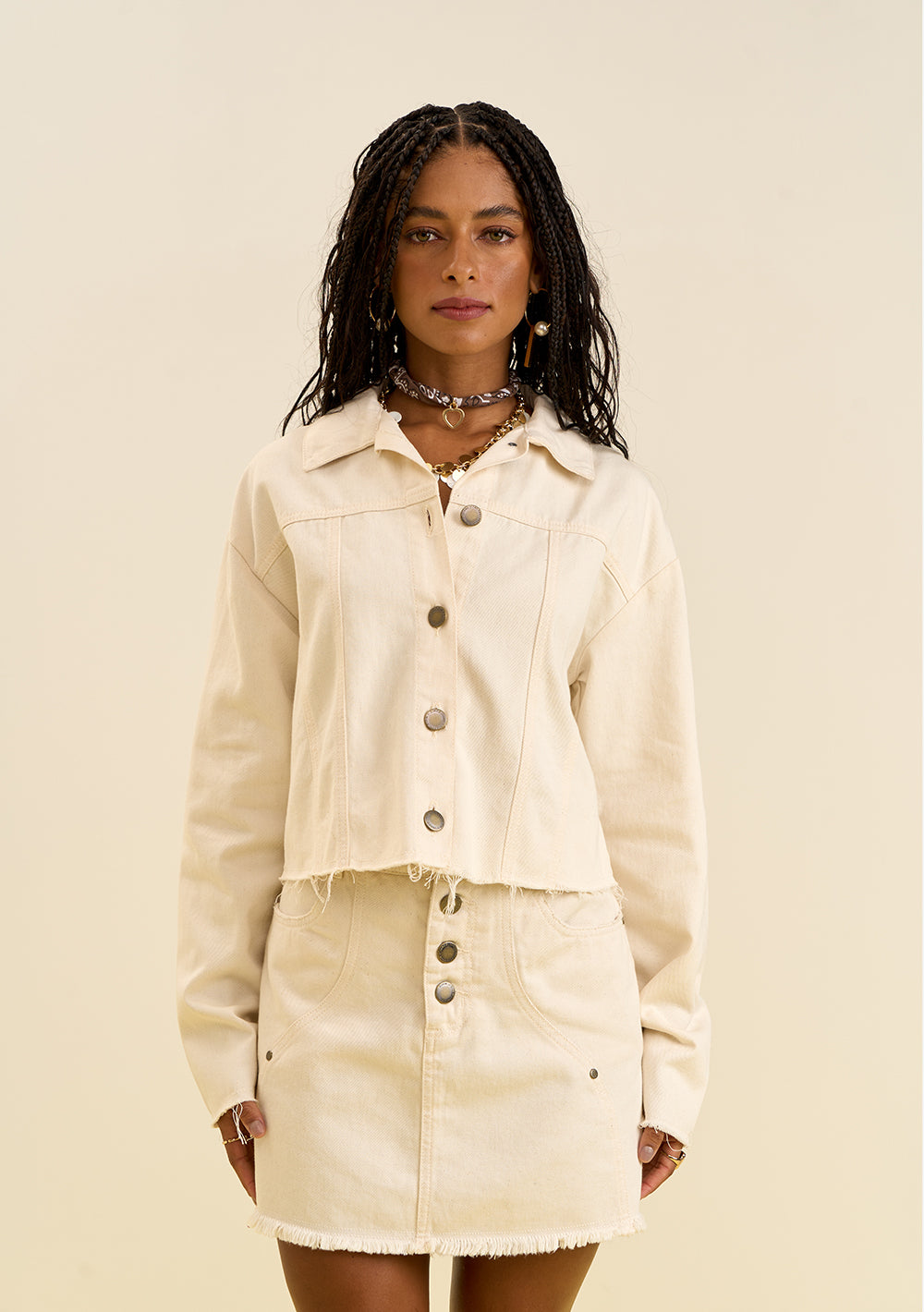Descubre la chaqueta suelta con manga larga y diseño cropped de Zinco, una prenda esencial para quienes buscan estilo y personalidad. Confeccionada en sarga 100% algodón, irradia juventud y libertad, perfecta para crear looks casuales o para destacar en fiestas. Combínala con pantalones de tiro alto y accesorios minimalistas para un look moderno y desenfadado. La colección “El Solsticio de Invierno” refleja la dualidad de la temporada con un toque de sofisticación y estilo.