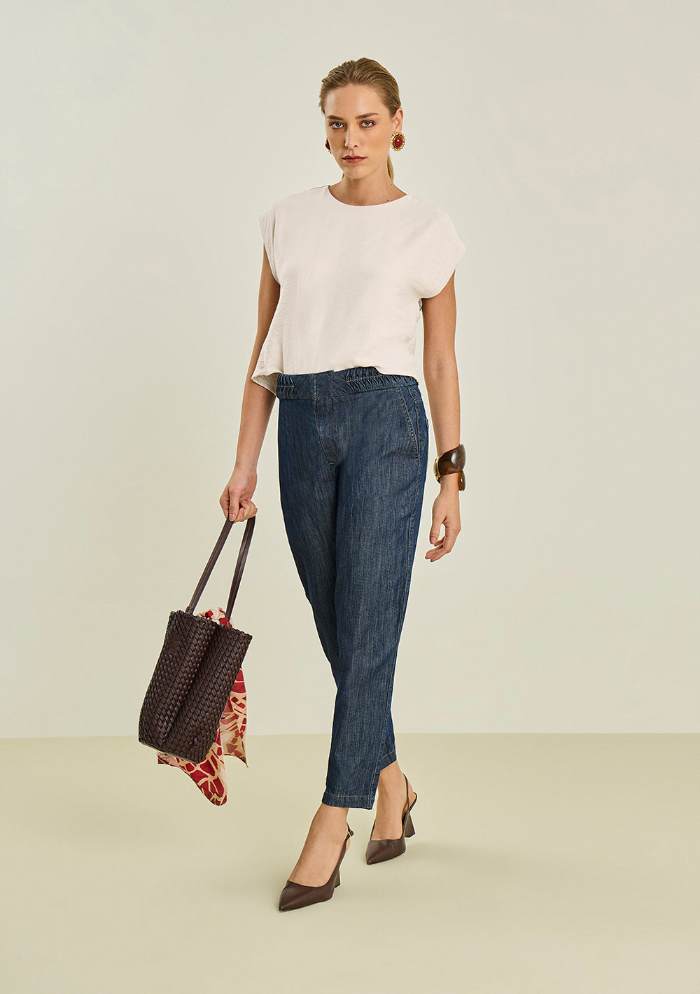 El pantalón cenoura de tiro alto en azul de Maria.Valentina es la elección perfecta para quienes buscan estilo y comodidad. Con un corte que realza la silueta femenina, esta prenda está confeccionada en 100% algodón, ofreciendo una sensación suave al tacto. Ideal para los días cálidos de primavera/verano, su versatilidad permite combinarlo con blusas elegantes o camisetas básicas, además de accesorios como sandalias de tiras y bolsos en tonos neutros. La colección Litorale transmite la energía del litoral mediterráneo, reflejando una estética auténtica y vibrante. Llévalo con una blusa blanca de lino y mules para un look sofisticado en eventos sociales, o con una camiseta oversized y zapatillas para un paseo casual. Este pantalón es una expresión de libertad y estilo, perfecto para la mujer contemporánea que celebra su feminidad y sus logros.