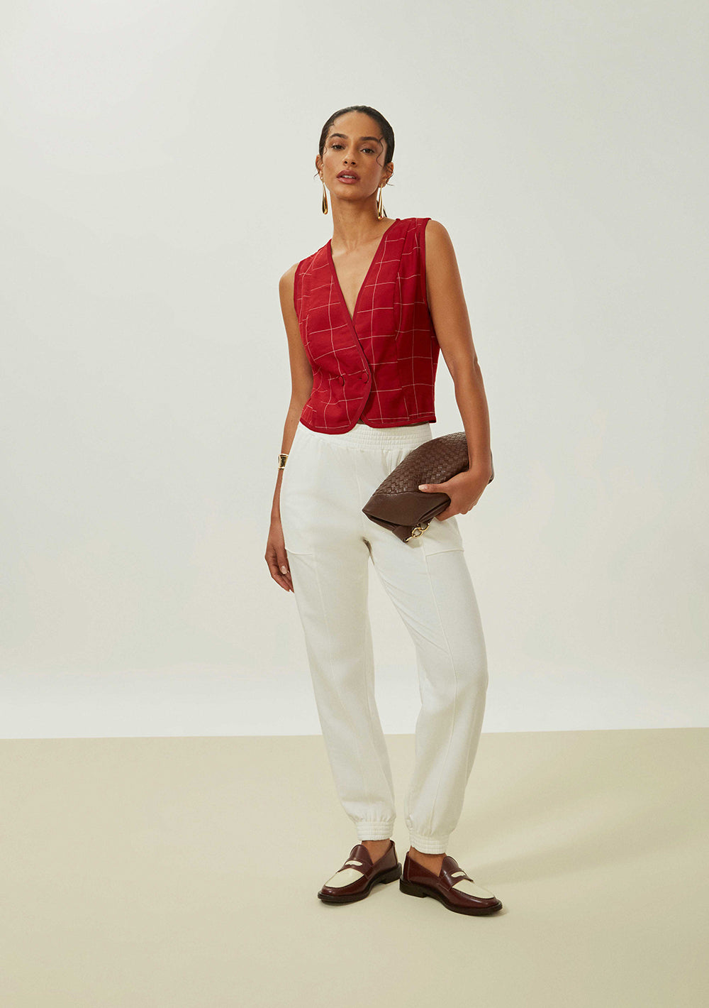 El pantalón jogging alto en off-white de Maria.Valentina es la síntesis perfecta entre comodidad y sofisticación. Con un diseño de inspiración sastrera, realza la silueta y aporta un look seguro y elegante. Confeccionado en 100% algodón, brinda suavidad y frescura, ideal para los días cálidos de primavera y verano. Combínalo con una blusa de seda vibrante y sandalias de tacón para un estilo refinado, o con una camiseta básica y zapatillas para un aire casual chic. Maria.Valentina celebra la esencia femenina con piezas que destacan la autoconfianza y la elegancia en cualquier ocasión. Invierte en esta prenda y siéntete poderosa y estilosa dondequiera que vayas.