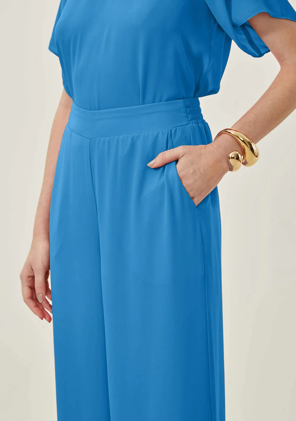 Realza tu estilo con una prenda que combina tradición y modernidad. Estos pantalones palazzo azules de tiro alto de Maria.Valentina, confeccionados en crepé, ofrecen un ajuste perfecto y realzan tu silueta con elegancia. Ideales para el verano, combinan a la perfección con blusas ligeras y sandalias sofisticadas, creando un look casual y chic. Ideales para una cena especial o un evento social, esta pieza refleja la sofisticación y autenticidad que representa la marca. Combínalos con accesorios dorados y un clutch minimalista para un toque extra de glamour. Siéntete segura y poderosa en cualquier ocasión.