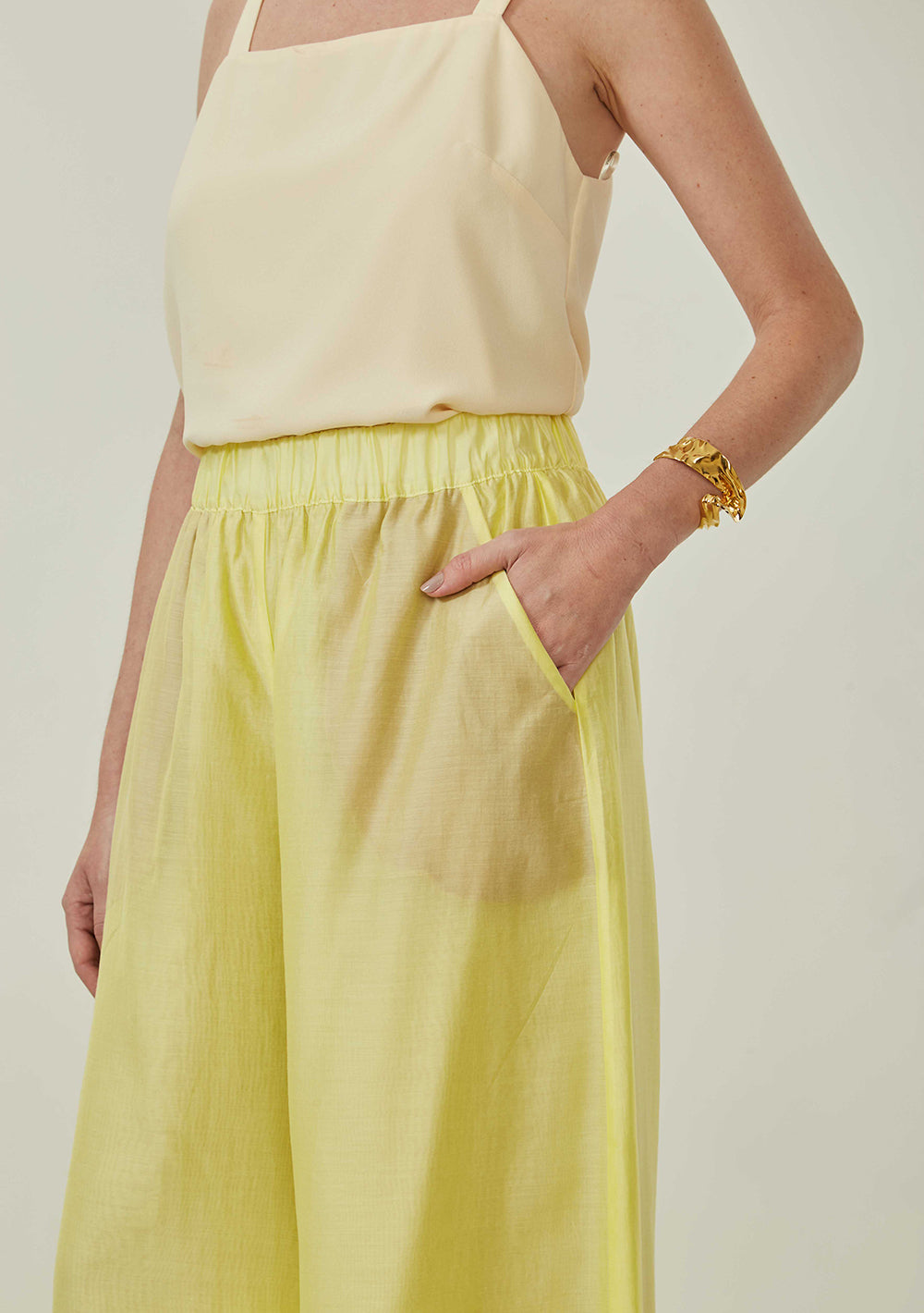 El pantalón palazzo verde de tiro alto de Maria.Valentina es la elección ideal para mujeres que buscan combinar comodidad y sofisticación. Con un corte elegante y fluido, su diseño de sastrería asegura una caída impecable, perfecta para ocasiones que van de lo casual a lo chic. Confeccionado en gasa con toque de lyocell y poliamida, aporta ligereza y movimiento, mientras que el forro 100% viscosa garantiza suavidad en contacto con la piel. Ideal para encuentros especiales o para un día intenso de trabajo, esta prenda se convierte en protagonista al combinarse con una blusa de seda o un top estructurado. Completa el look con sandalias de tacón alto y accesorios minimalistas para un estilo moderno y sofisticado. La colección Maria.Valentina es una celebración de la elegancia atemporal, que siempre refleja la brasilidad y el encanto únicos de la marca. Invierte en una prenda que expresa tu estilo y resalta tu esencia en cualquier ocasión.