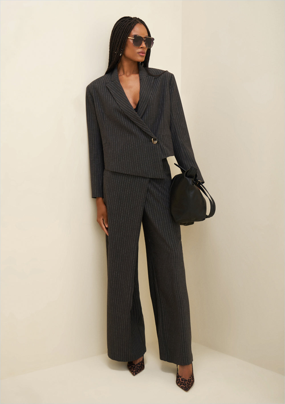 Es la máxima expresión de sofisticación y versatilidad para la mujer moderna. Con un diseño impecable de sastrería, esta prenda es ideal para quienes desean pasar con elegancia y confianza del entorno de oficina a eventos sociales. El corte recto y la cintura alta realzan la silueta, mientras que el tono gris ofrece infinitas posibilidades de combinación con blusas vibrantes o neutras y accesorios elegantes.