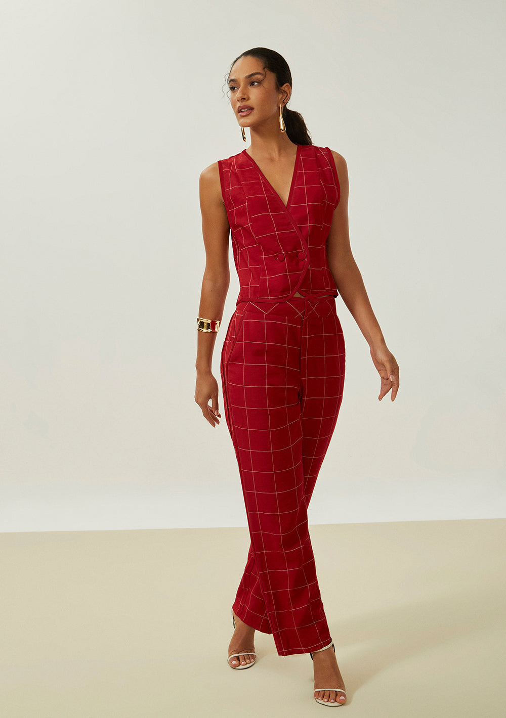 El pantalón recto de tiro alto en color rojo de Maria.Valentina es la prenda esencial para mujeres que buscan sofisticación y comodidad. Con un diseño de sastrería que ofrece una caída impecable, este pantalón, confeccionado en viscosa y poliamida, es ideal para ocasiones casuales con un toque de elegancia. Combínalo con una blusa de seda y sandalias de tacón para un look veraniego refinado. La esencia del estilo italiano y la riqueza cultural se hacen presentes en este conjunto inolvidable, perfecto tanto para una cena especial como para una reunión importante. Invierte en un estilo que preserva memorias y da forma al presente.