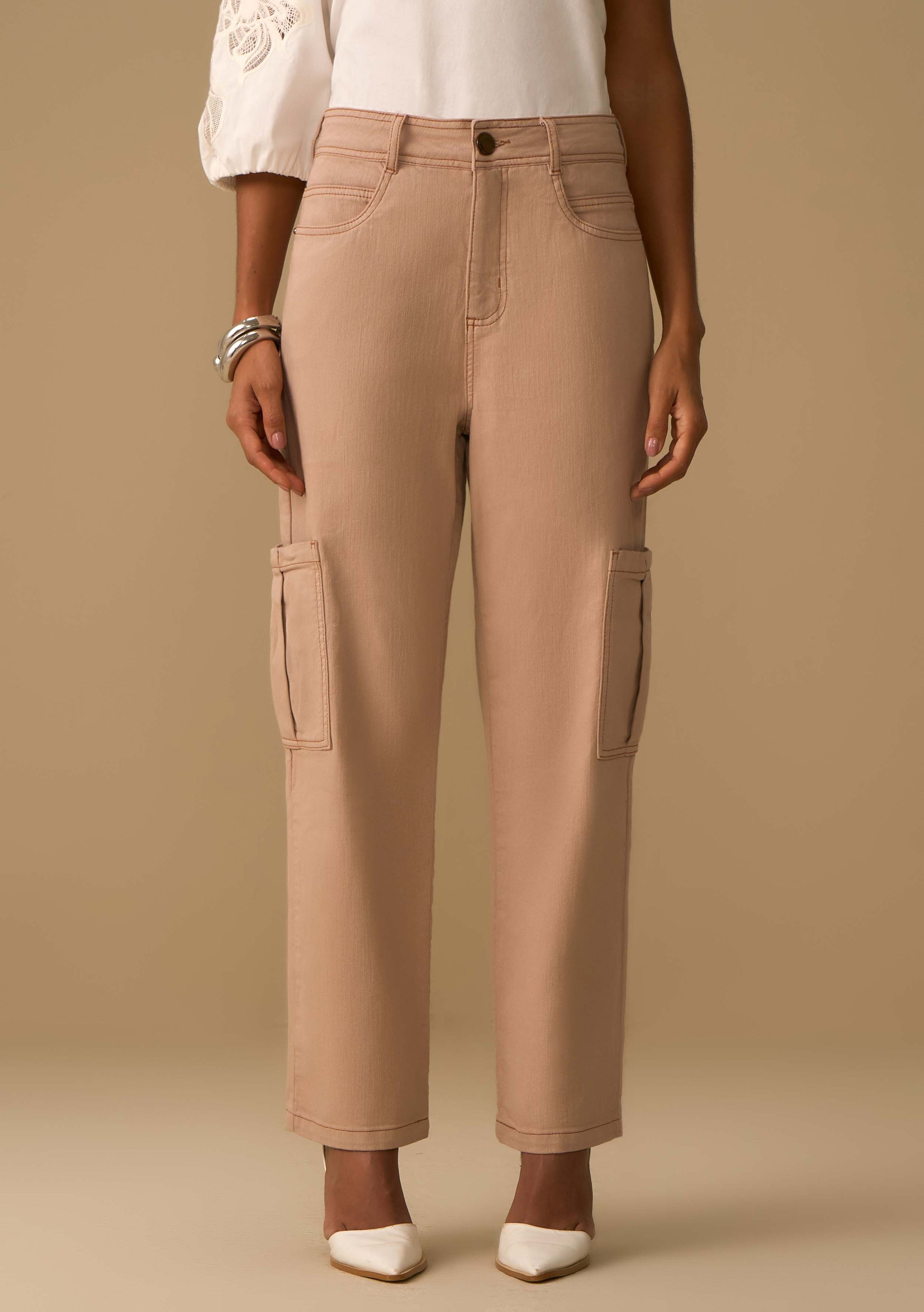 Transforma tu guardarropa con este pantalón de Maria.Valentina, una prenda que une comodidad y sofisticación en cada detalle. Con corte recto y cintura alta en un sofisticado tono beige, está confeccionado en denim de alta calidad, con 98% algodón y 2% elastano, garantizando un calce impecable y confort duradero. Ideal para ocasiones formales e informales, combina perfectamente con blusas de seda o camisas estructuradas, elevando tu look con elegancia. Inspirada en el Renacimiento, esta colección transmite la fuerza y la actitud de la mujer contemporánea, reflejando su autoconfianza y autenticidad. Apuesta por esta prenda esencial para expresar tu estilo y tu brillo personal.