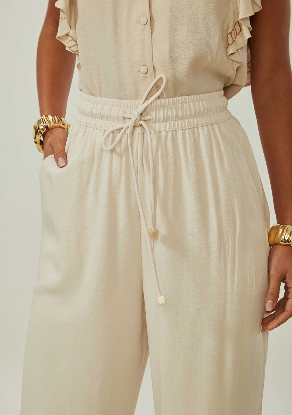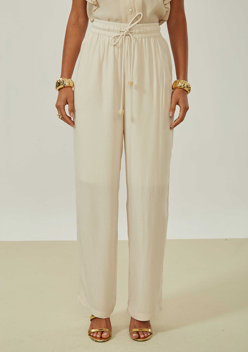 El pantalón recto de tiro alto en color beige de Maria.Valentina es la personificación de la sofisticación y la comodidad. Confeccionado en 100% viscosa, ofrece una caída impecable que realza la silueta femenina. Ideal para ocasiones casuales, su diseño de sastrería es perfecto para transitar del día a la noche con elegancia. Combínalo con una blusa de seda y accesorios dorados para un look que irradia autoconfianza y encanto en cualquier situación. Una prenda esencial para quienes buscan un estilo versátil y atemporal.
