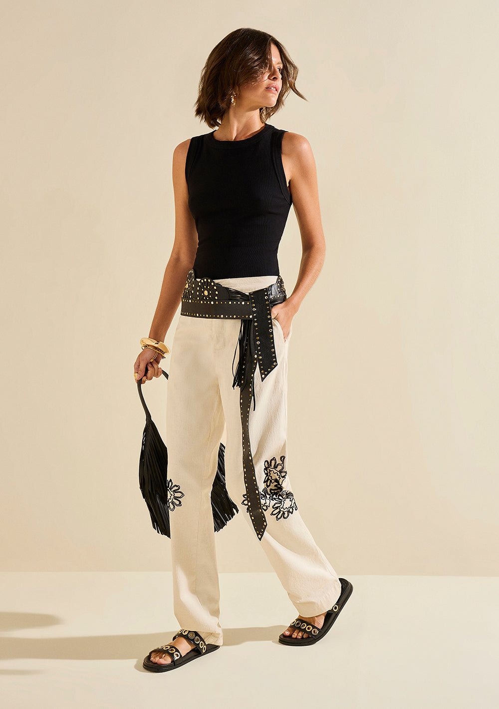 Pantalón recto beige de tiro medio Morena Rosa: una invitación a la ligereza y la sofisticación. Perfecto para mujeres modernas y seguras de sí mismas, esta prenda combina algodón, viscosa, lino y elastano, ofreciendo comodidad y elegancia. Su diseño recto de sarga es ideal para eventos informales, combinando a la perfección con blusas vaporosas y sandalias de tiras. Parte de la colección "Ela é Carioca", su color beige derrocha encanto brasileño. Apuesta por la versatilidad de estos pantalones para crear looks increíbles, ya sea para un día en la oficina o para un paseo junto al mar. Accesorios no incluidos.