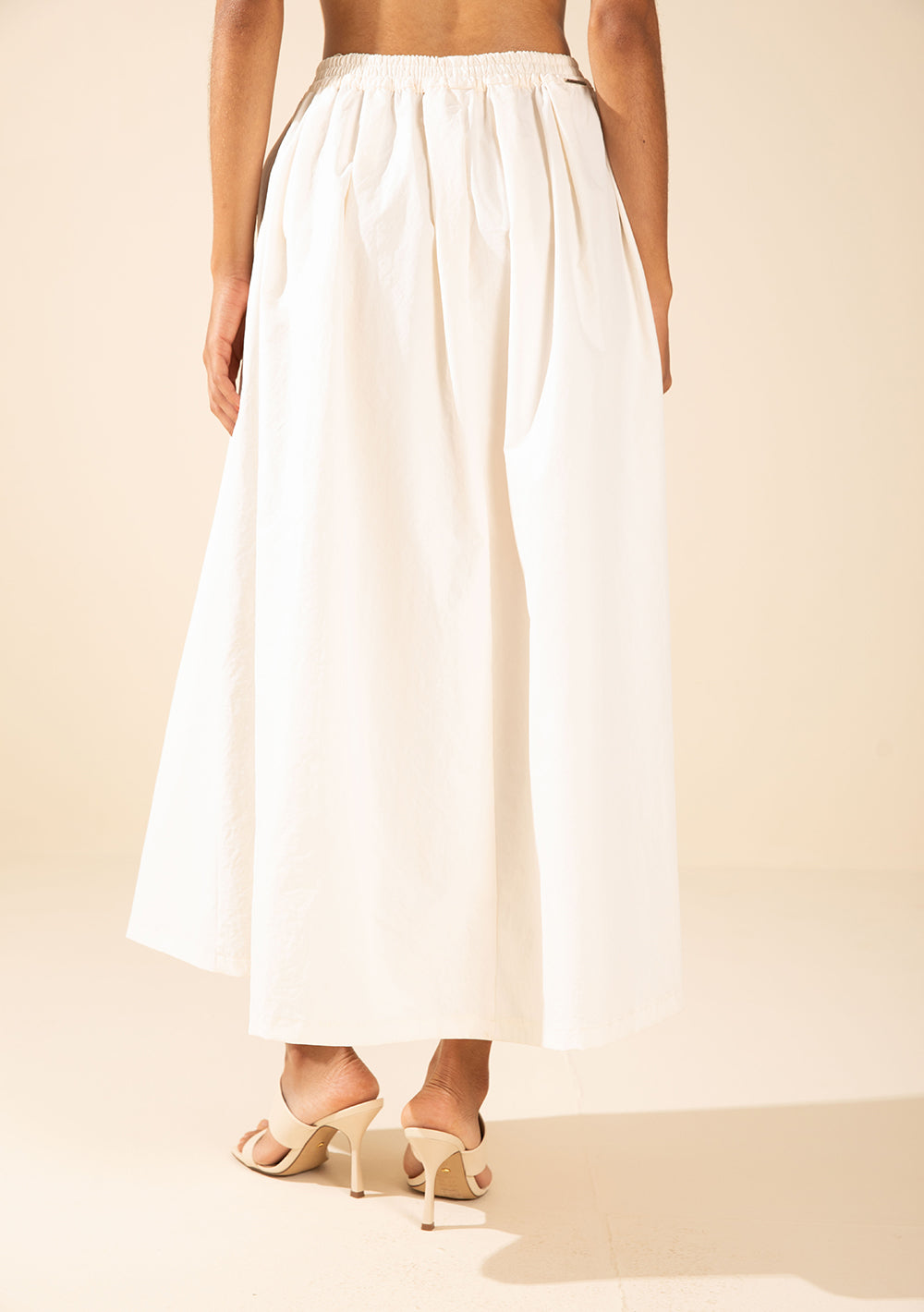 Eleva tu estilo con la falda evasé larga de tiro alto en color off white de Morena Rosa, una prenda que une sofisticación y versatilidad. Con su caída impecable, esta falda de sastrería en 100% poliamida es un tributo a la elegancia carioca, perfecta para pasar del entorno laboral a eventos sociales. Inspirada en la colección Ela é Carioca!, aporta el toque vibrante del verano con su diseño limpio y atemporal. Combínala con tops coloridos o blusas neutras para un look que irradia confianza.