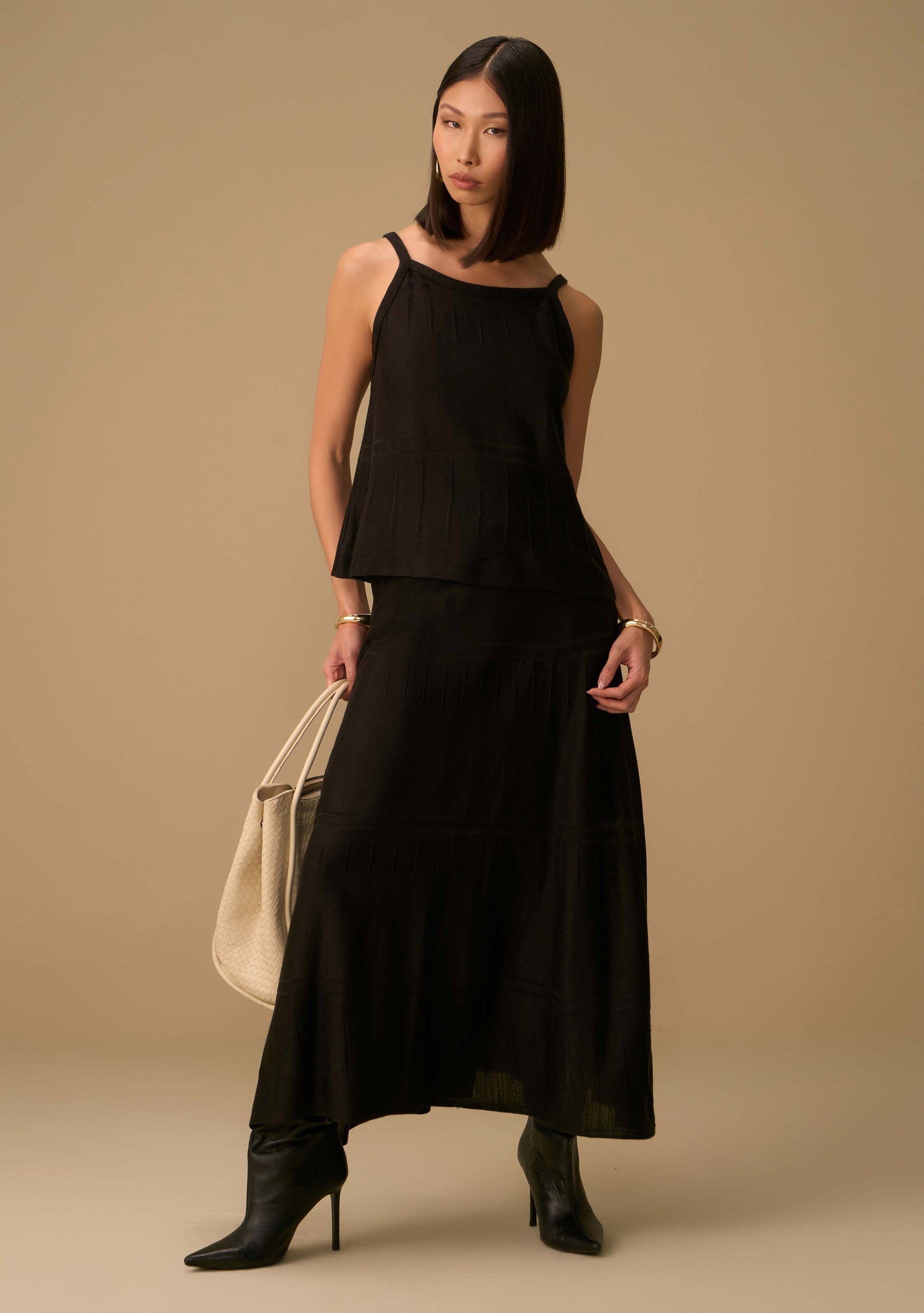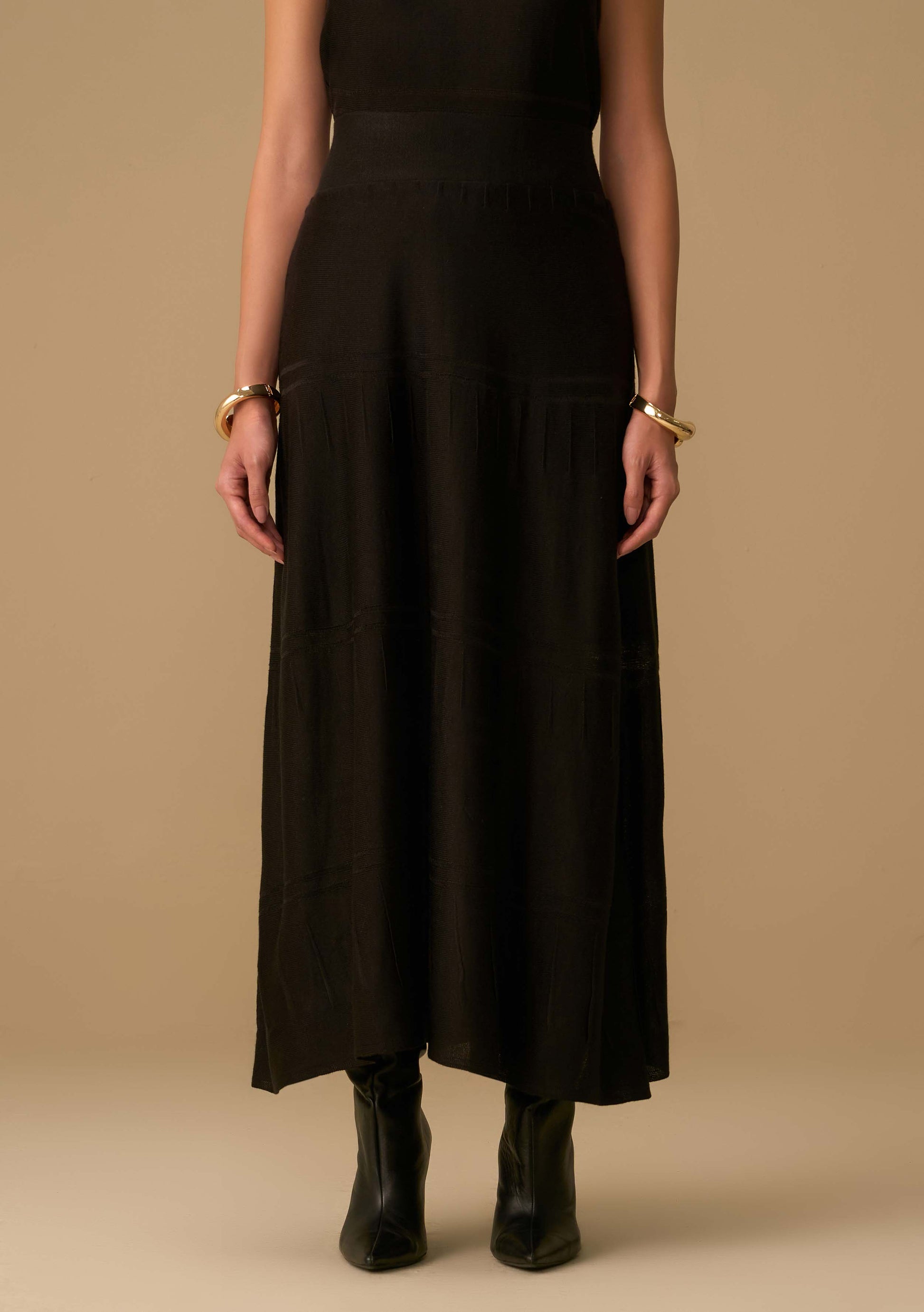Descubre la sofisticación y el encanto de la falda evasé midi negra de Maria Valentina, una prenda que abraza la esencia del Renacimiento con un toque moderno. Ideal para mujeres que celebran la moda como una expresión de identidad, esta falda ees perfecta tanto para una cena romántica como para reuniones de alto nivel. Con cintura alta y corte midi, combina elegancia, confort y estilo. Complétala con blusas ajustadas y accesorios dorados para un look inolvidable.