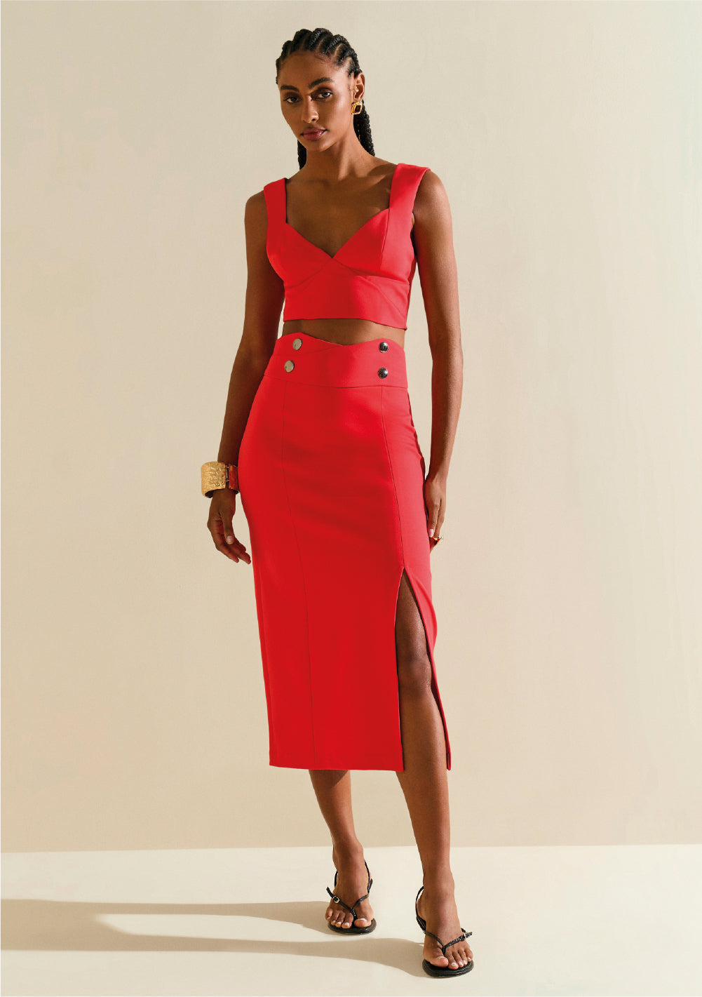 Pollera Recta Tiro Alto Midi