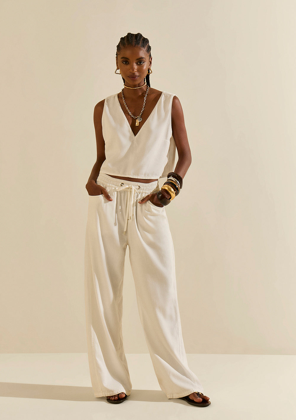 El Top Morena Rosa con Escote en V y Tirantes Anchos en Off White es la pieza ideal para la mujer moderna que busca elegancia y comodidad en un solo ítem. Con un diseño sofisticado y atemporal, se destaca por su escote en V que realza el escote y por los tirantes anchos que brindan mayor seguridad y confort. Confeccionado en un tejido liviano de viscosa y algodón, es perfecto para los días cálidos de la temporada primavera/verano.