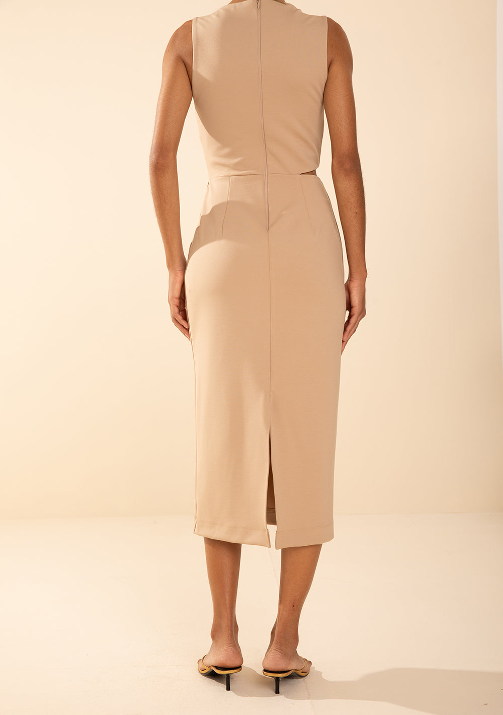 Vestido Ajustado Escote Canoa Sin Mangas Midi