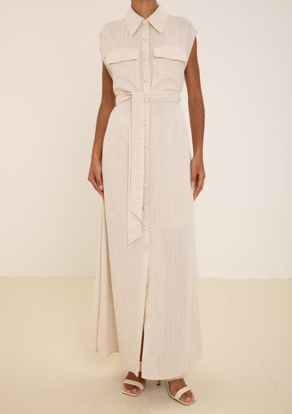 Vestido Largo Suelto Cuello Clásico Sin Mangas