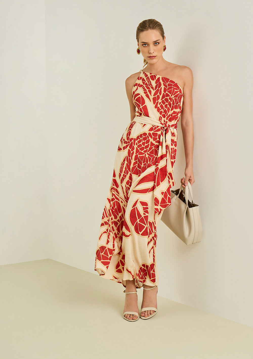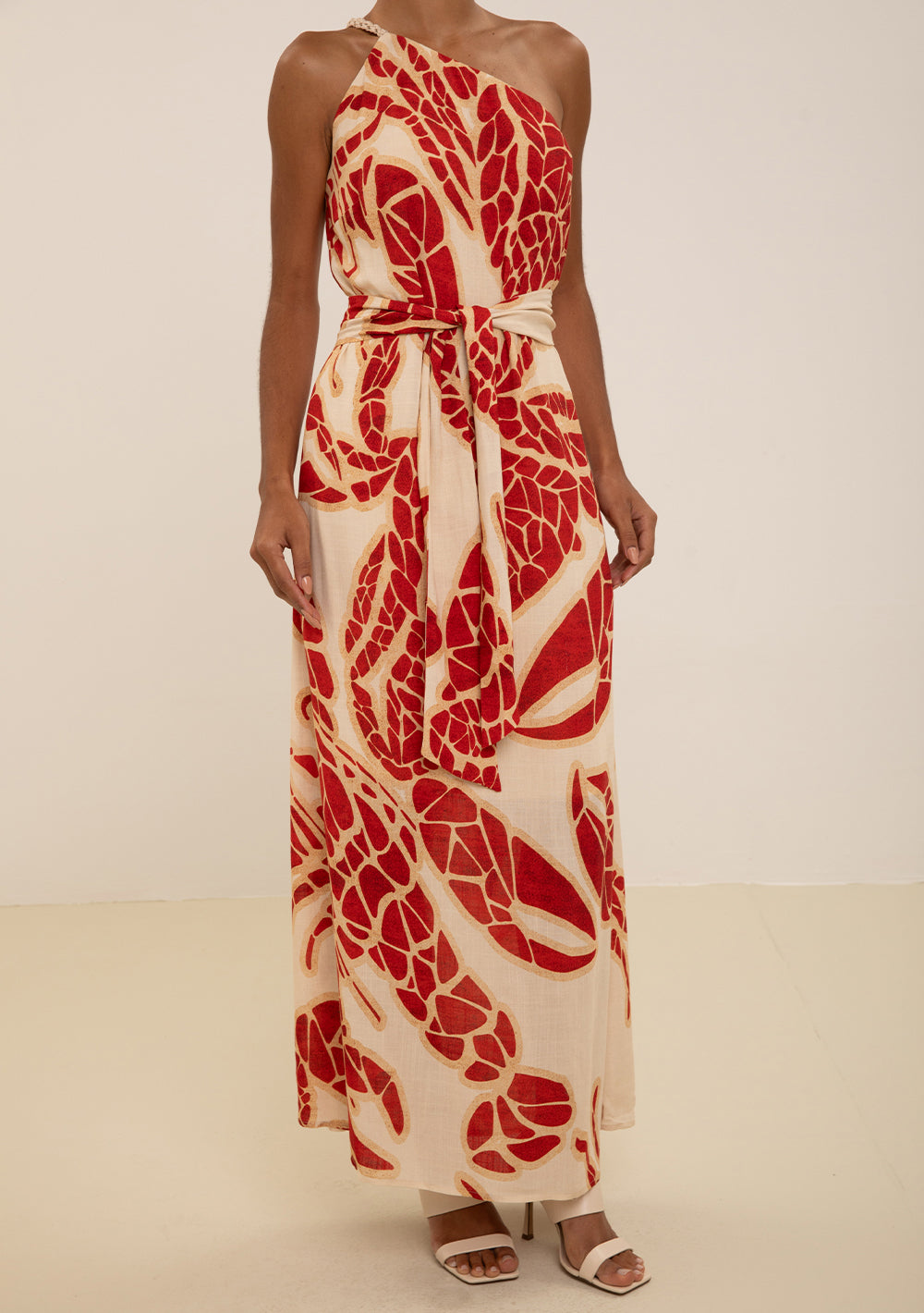 El vestido suelto de un solo hombro en tono beige es la elección perfecta para la mujer que valora la elegancia y el confort en cualquier ocasión. Con un diseño que fluye con el cuerpo, este modelo largo está confeccionado en 100% viscosa, aportando ligereza y una suavidad exquisita al tacto. Ideal tanto para eventos casuales como para celebraciones, se destaca por su tirante único y su caída impecable, que realza la feminidad con naturalidad. Combínalo con accesorios dorados y sandalias de tiras para un look sofisticado, o con zapatillas blancas para un estilo más relajado y moderno. Una pieza clave que permite expresar tu autenticidad y estilo propio. La colección Litorale, inspirada en las bellezas del litoral italiano, transmite la libertad y la ligereza que mereces.