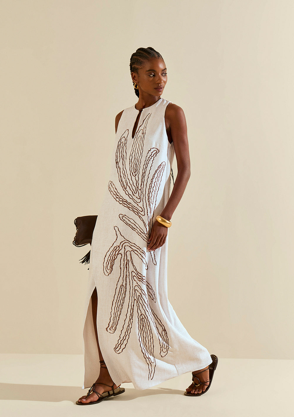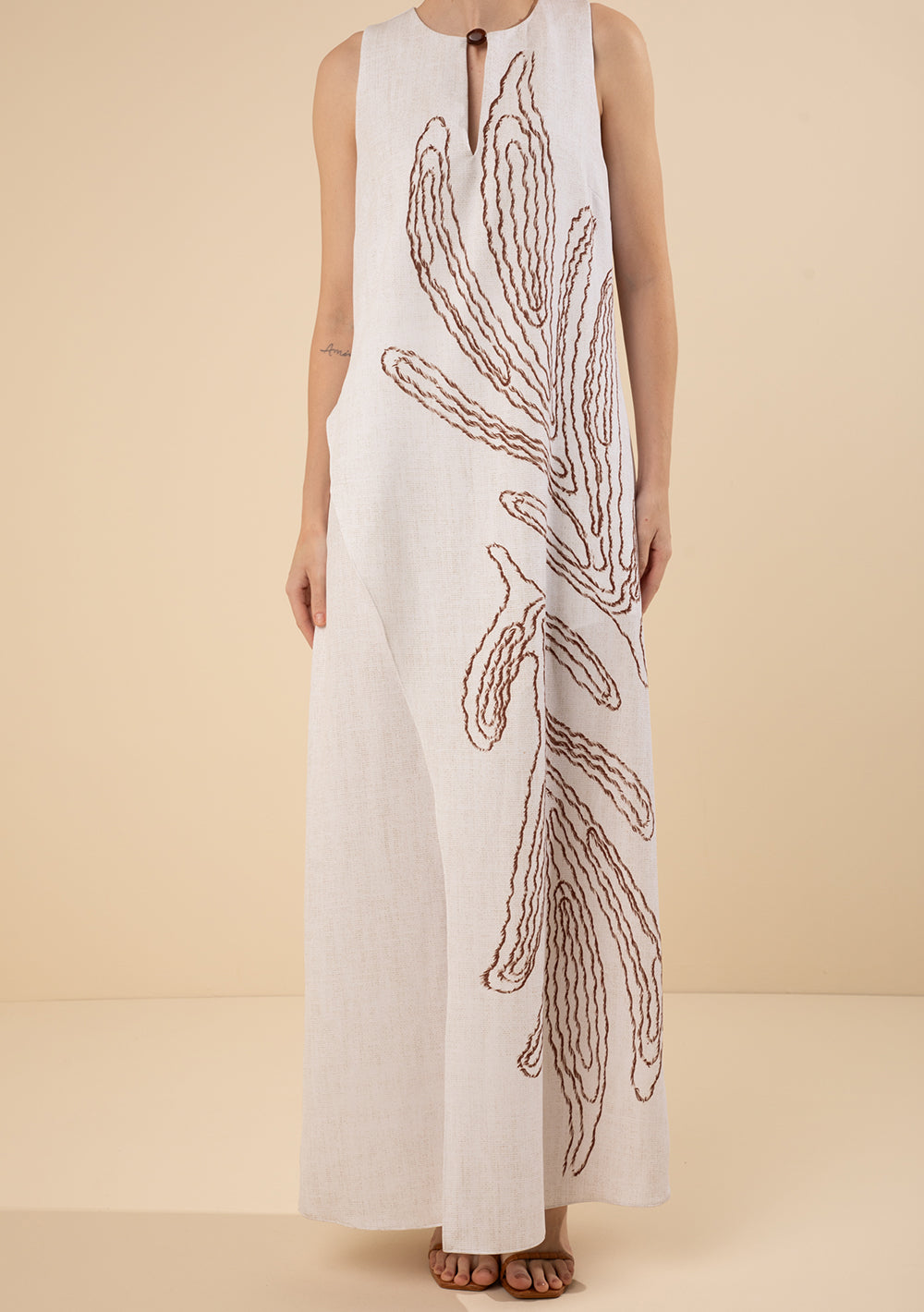 El Vestido Morena Rosa Suelto con Cuello Redondo, sin Mangas y Largo en Beige es la elección ideal para quienes desean irradiar elegancia y sofisticación en cualquier ocasión. Con un diseño que realza la silueta femenina, este vestido está confeccionado en crepé liviano, garantizando comodidad y un calce impecable. El tono beige neutro permite combinaciones versátiles, desde un look casual para el día a día hasta una propuesta más glamorosa para fiestas. Llévalo con sandalias de tiras y accesorios dorados para un toque de brillo, o con una campera de jean y zapatillas para un estilo urbano. La colección À Flor da Pele pone en primer plano la esencia vibrante de la mujer brasileña, celebrando la autenticidad y la feminidad. Para un look impactante y memorable, apuesta por este vestido que promete convertirse en el protagonista de tu guardarropa.