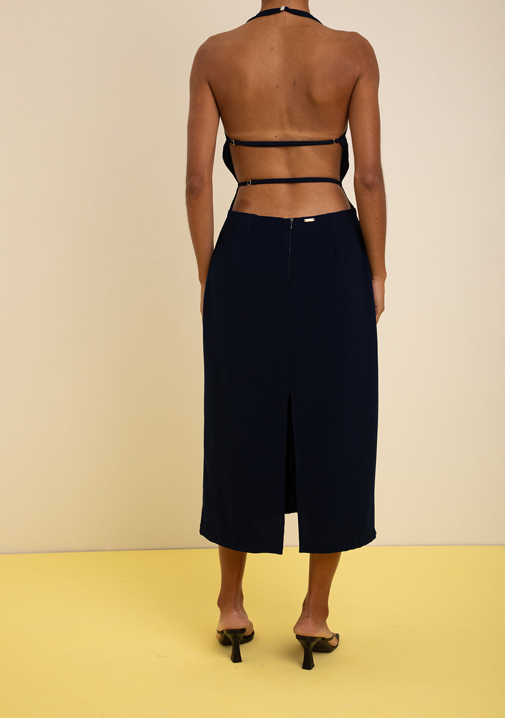 Vestido Midi Ajustado Escote Redondo Sin Mangas