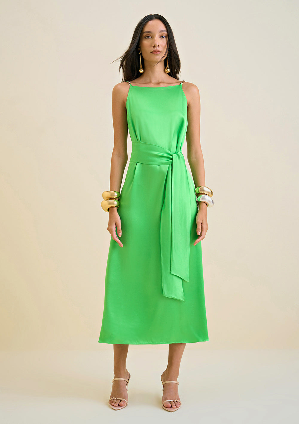 Vestido Midi Escote Recto Con Faja