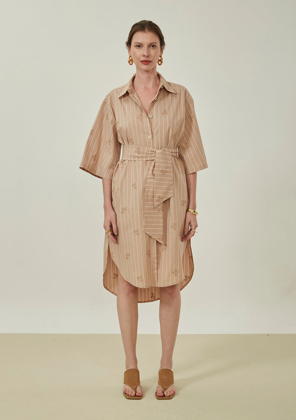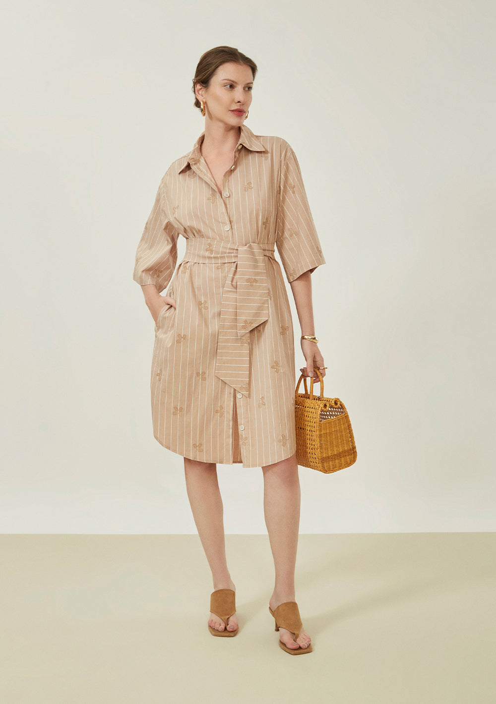Vestido Suelto Cuello Clásico Mangas Cortas Midi